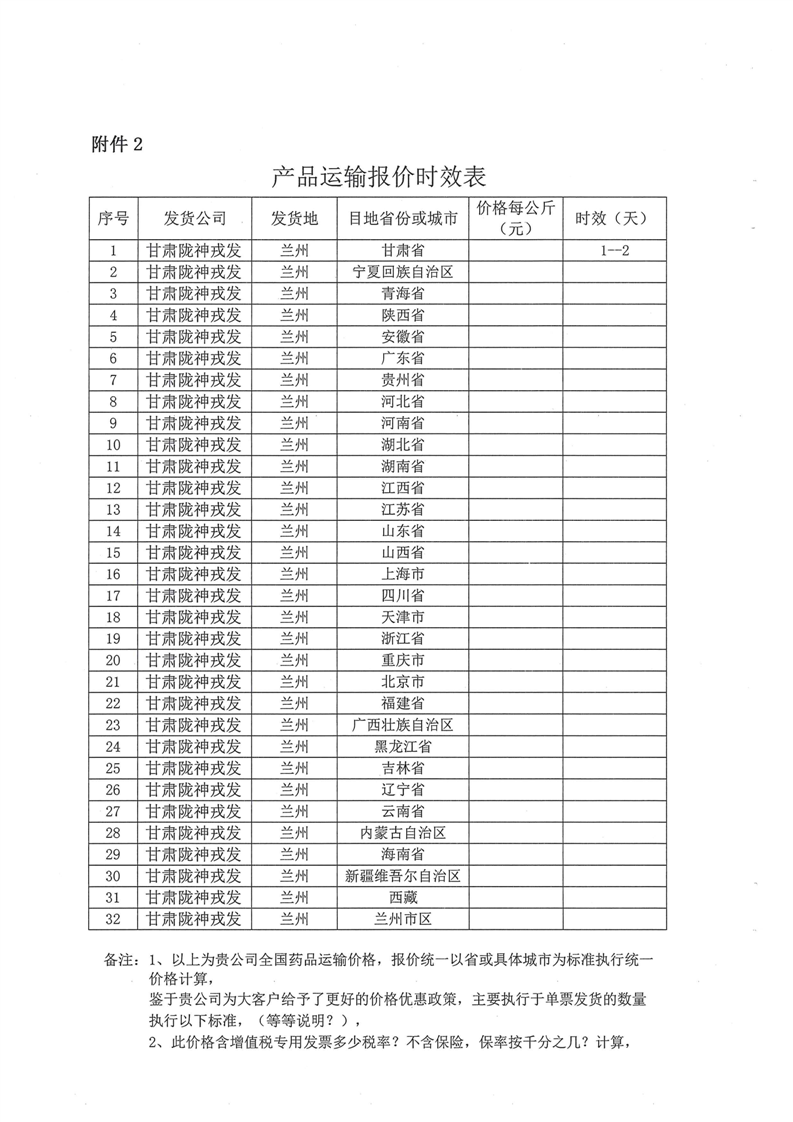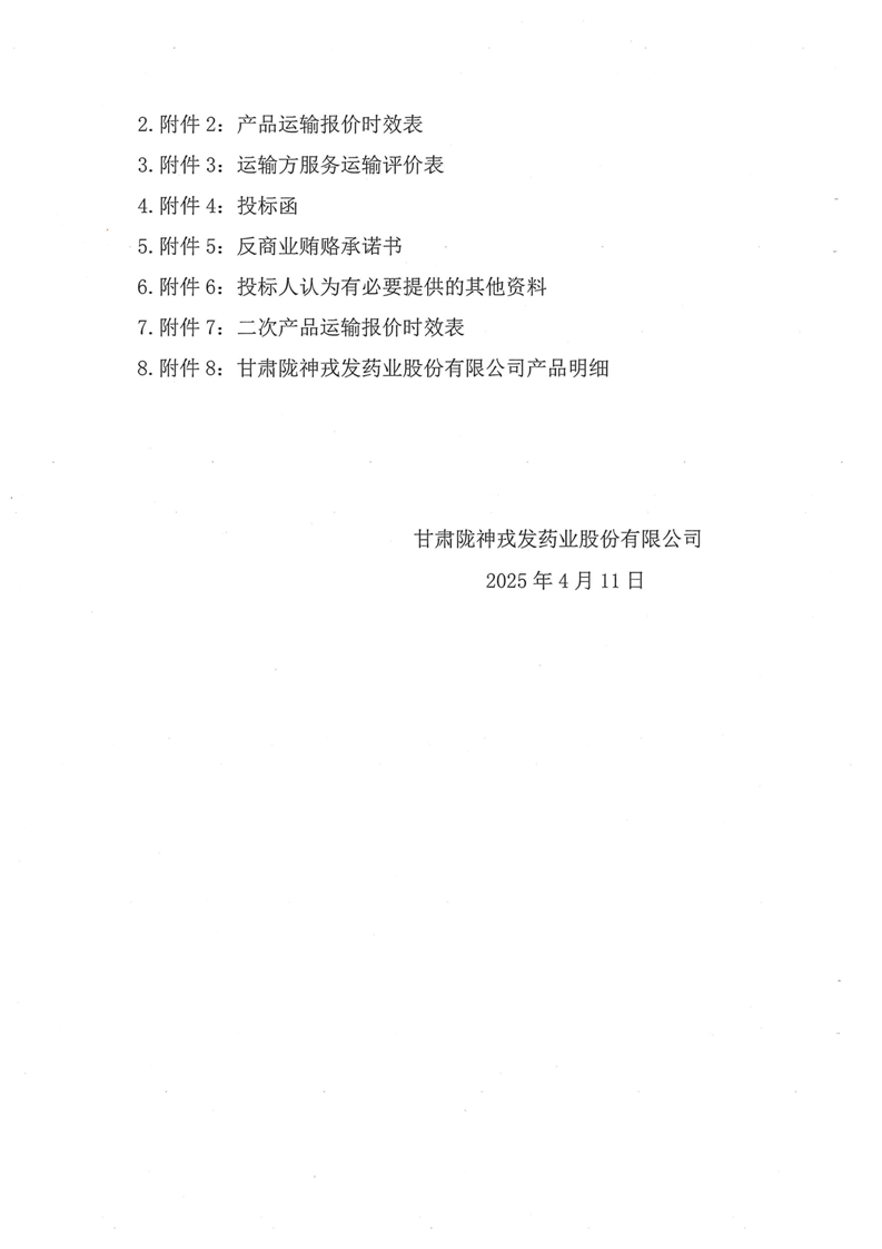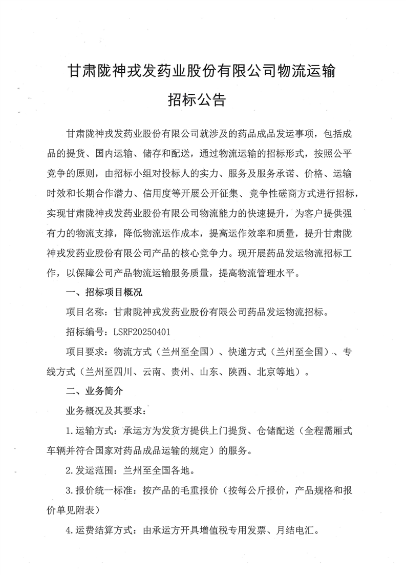甘肅隴神戎發(fā)藥業(yè)股份有限公司物流運(yùn)輸招標(biāo)公告