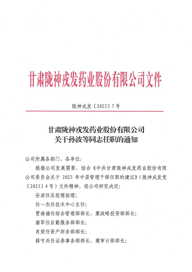 關(guān)于孫波等同志任職的通知