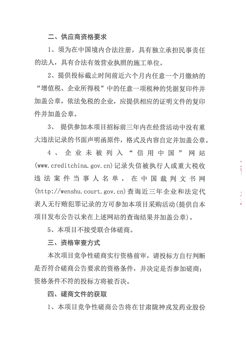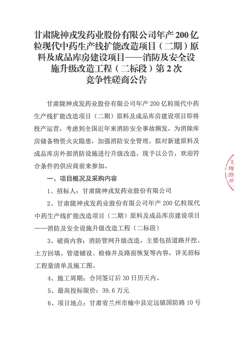 甘肅隴神戎發(fā)藥業(yè)股份有限公司年產(chǎn)200億?,F(xiàn)代中藥生產(chǎn)線(xiàn)擴(kuò)能改造項(xiàng)目(二期)原料及成品庫(kù)房建設(shè)項(xiàng)目——消防及安全設(shè)施升級(jí)改造工程(二標(biāo)段)第2次