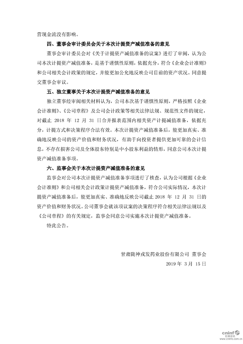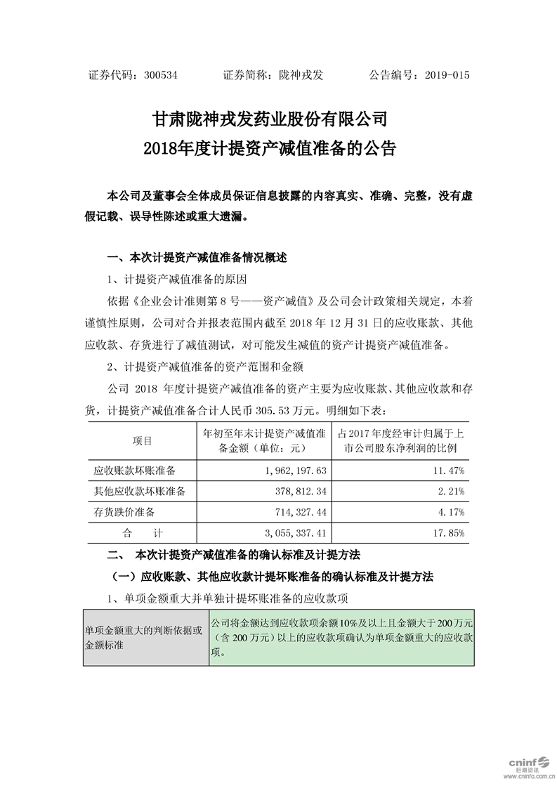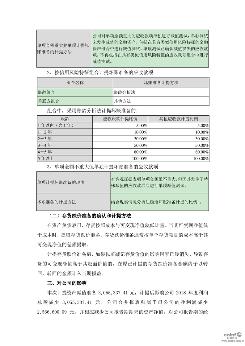2018年度計提資產(chǎn)減值準(zhǔn)備的公告