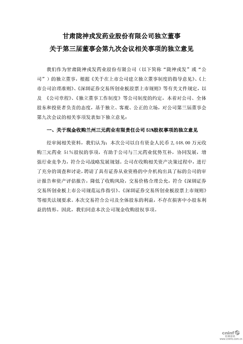 關(guān)于第三屆董事會第九次會議相關(guān)事項的獨立意見