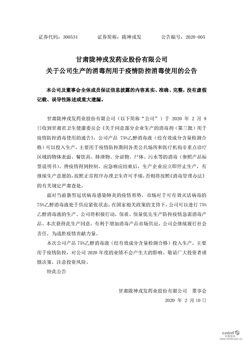 關(guān)于公司生產(chǎn)的消毒劑用于疫情防控消毒使用的公告
