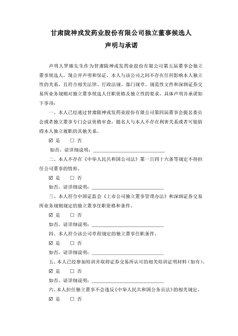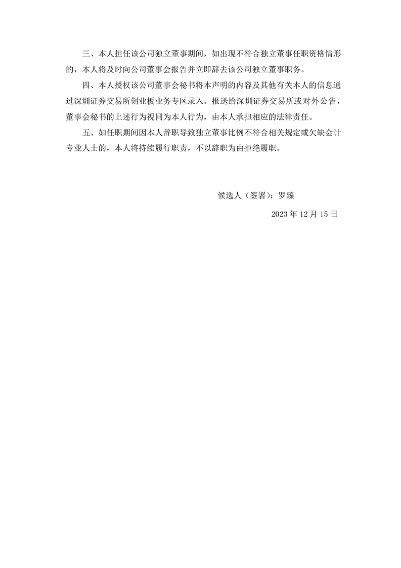 獨(dú)立董事候選人聲明與承諾(羅臻)