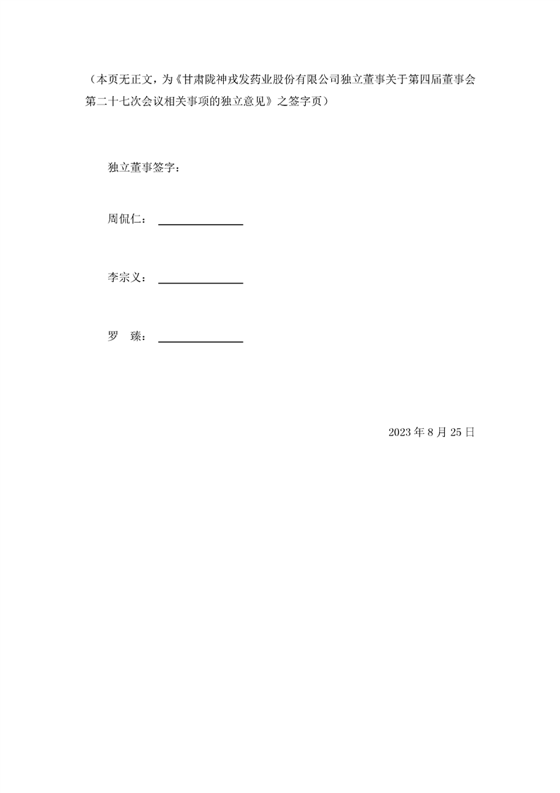 獨(dú)立董事關(guān)于第四屆董事會第二十七次會議相關(guān)事項的獨(dú)立意見
