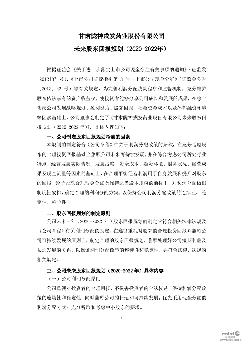 未來股東回報(bào)規(guī)劃(2020-2022年)