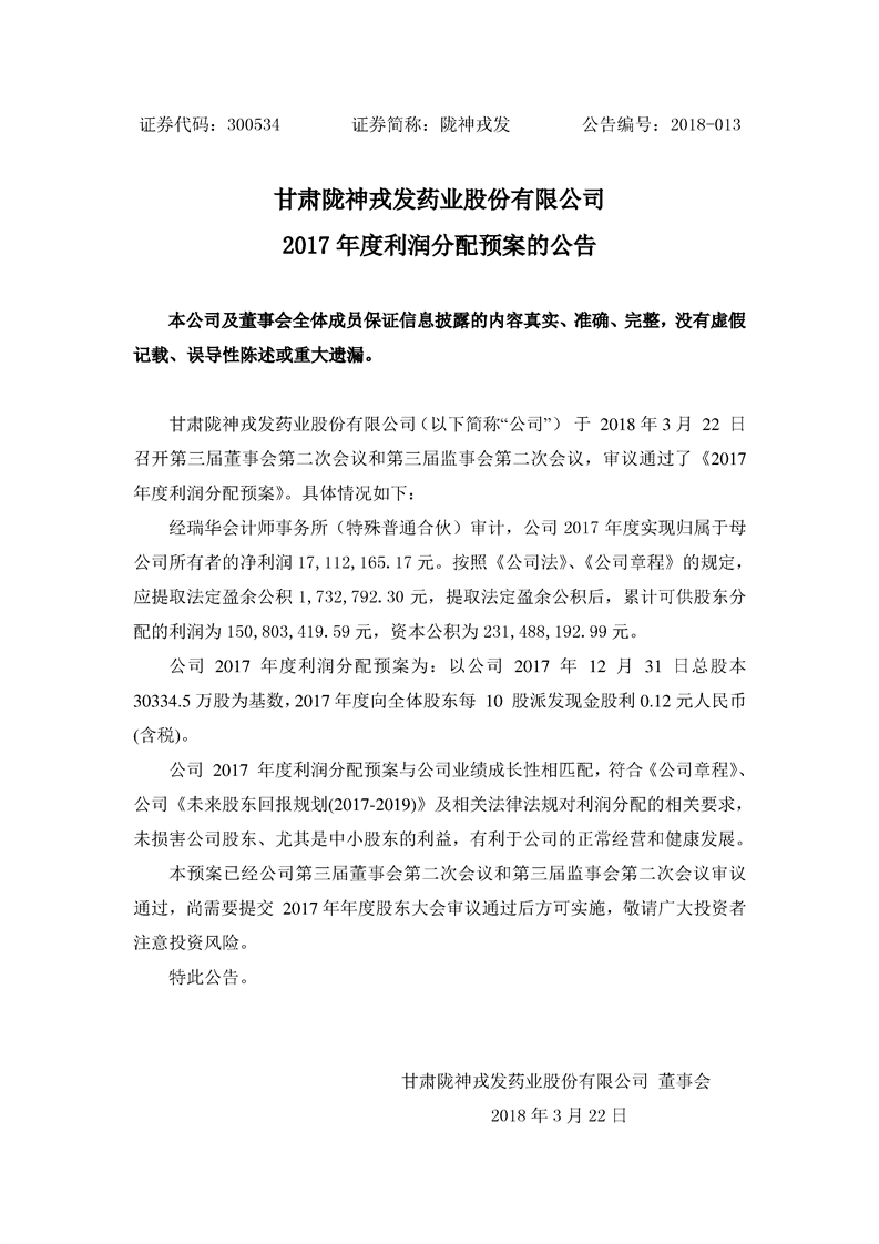 2017 年度利潤(rùn)分配預(yù)案的公告