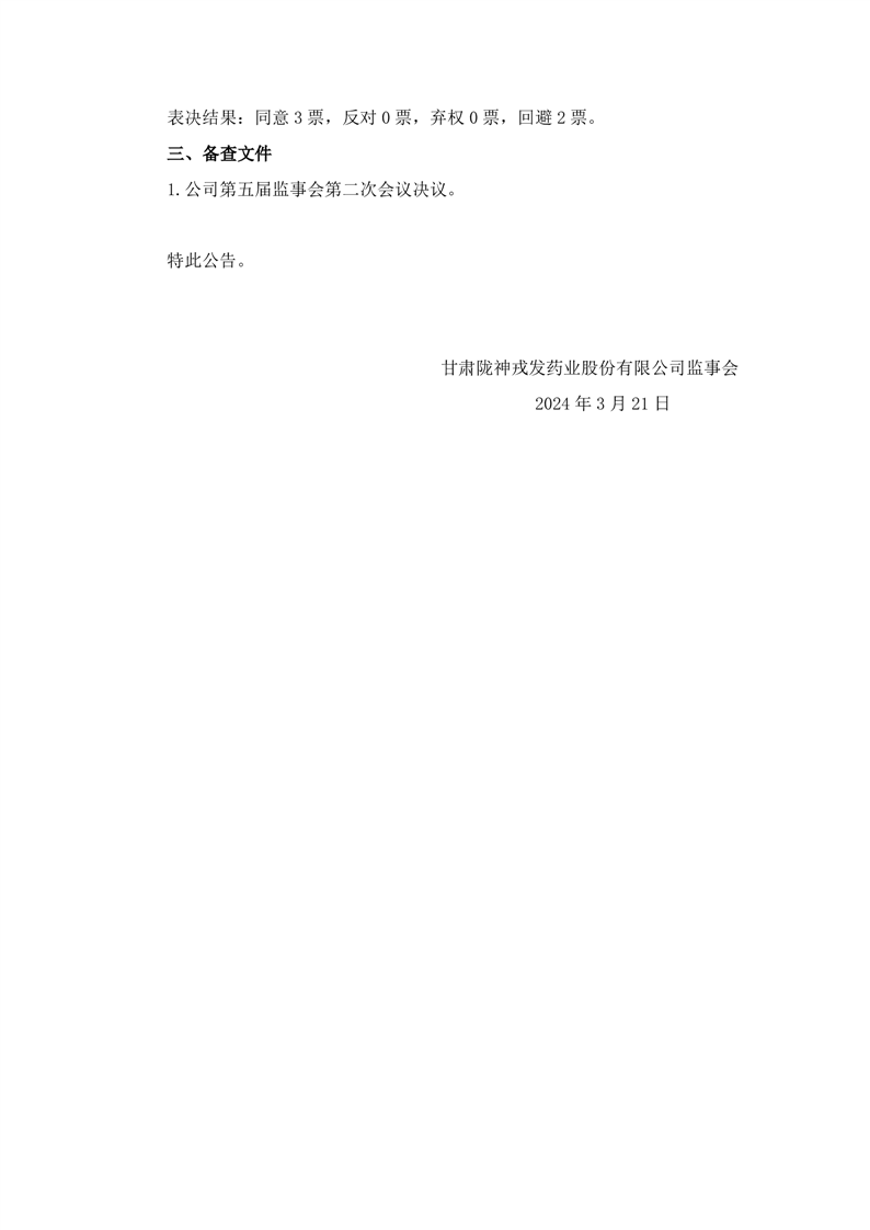 第五屆監(jiān)事會(huì)第二次會(huì)議決議公告