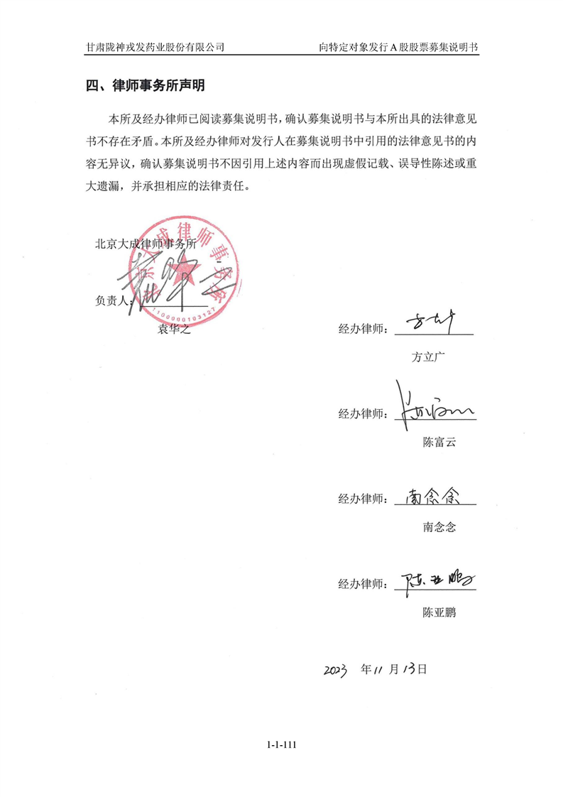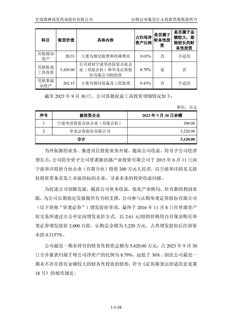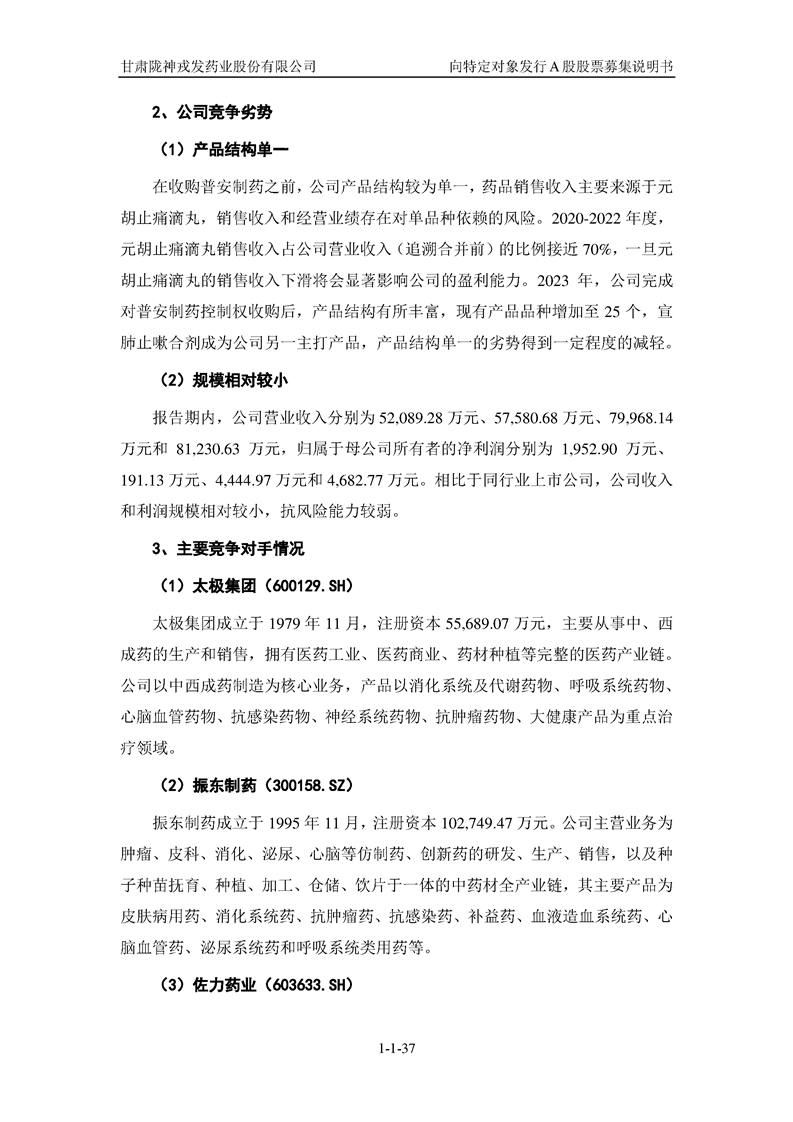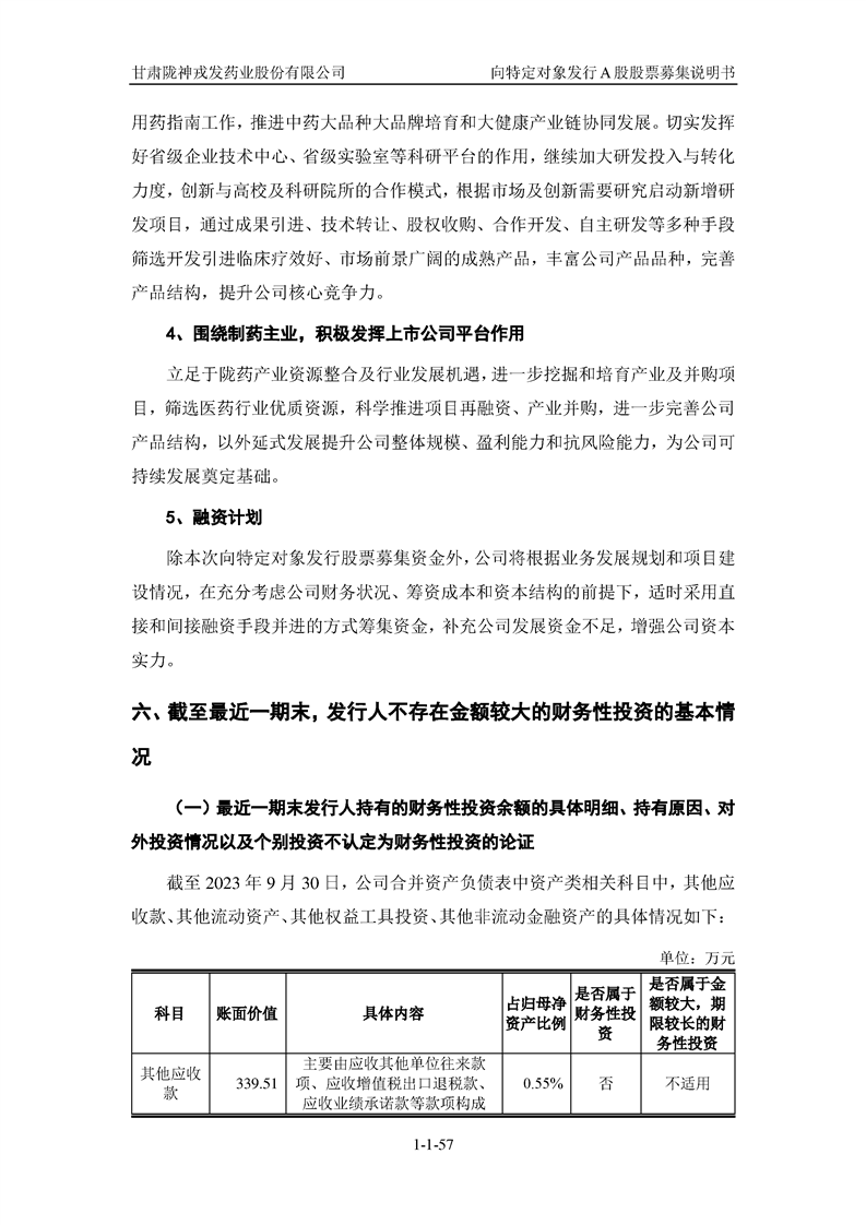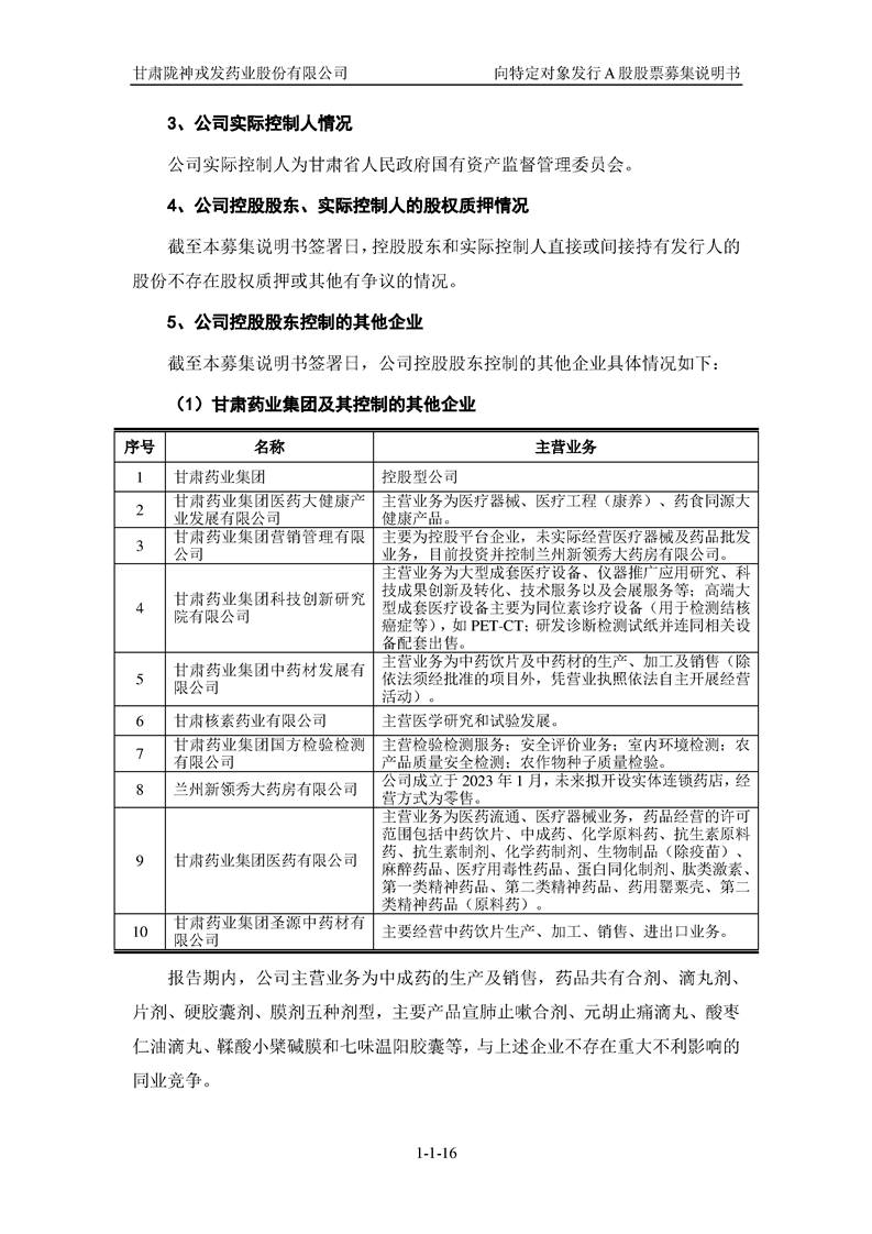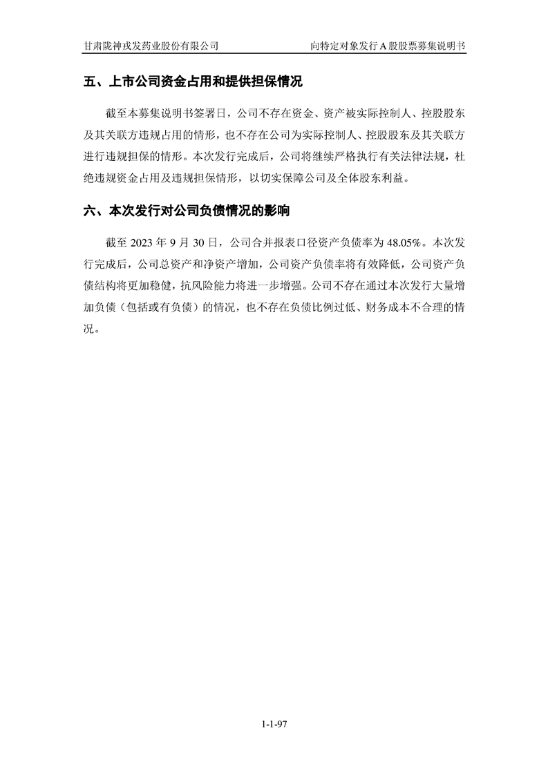 甘肅隴神戎發(fā)藥業(yè)股份有限公司向特定對象發(fā)行A股股票募集說明書(申報稿)