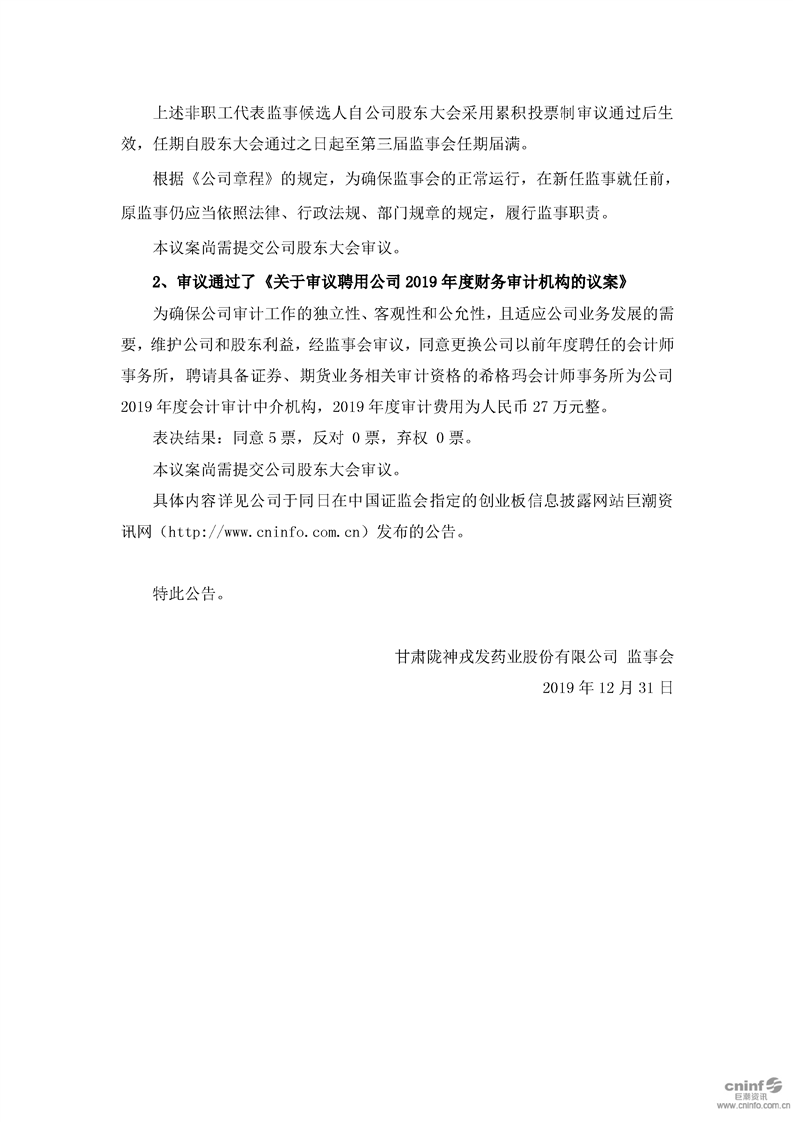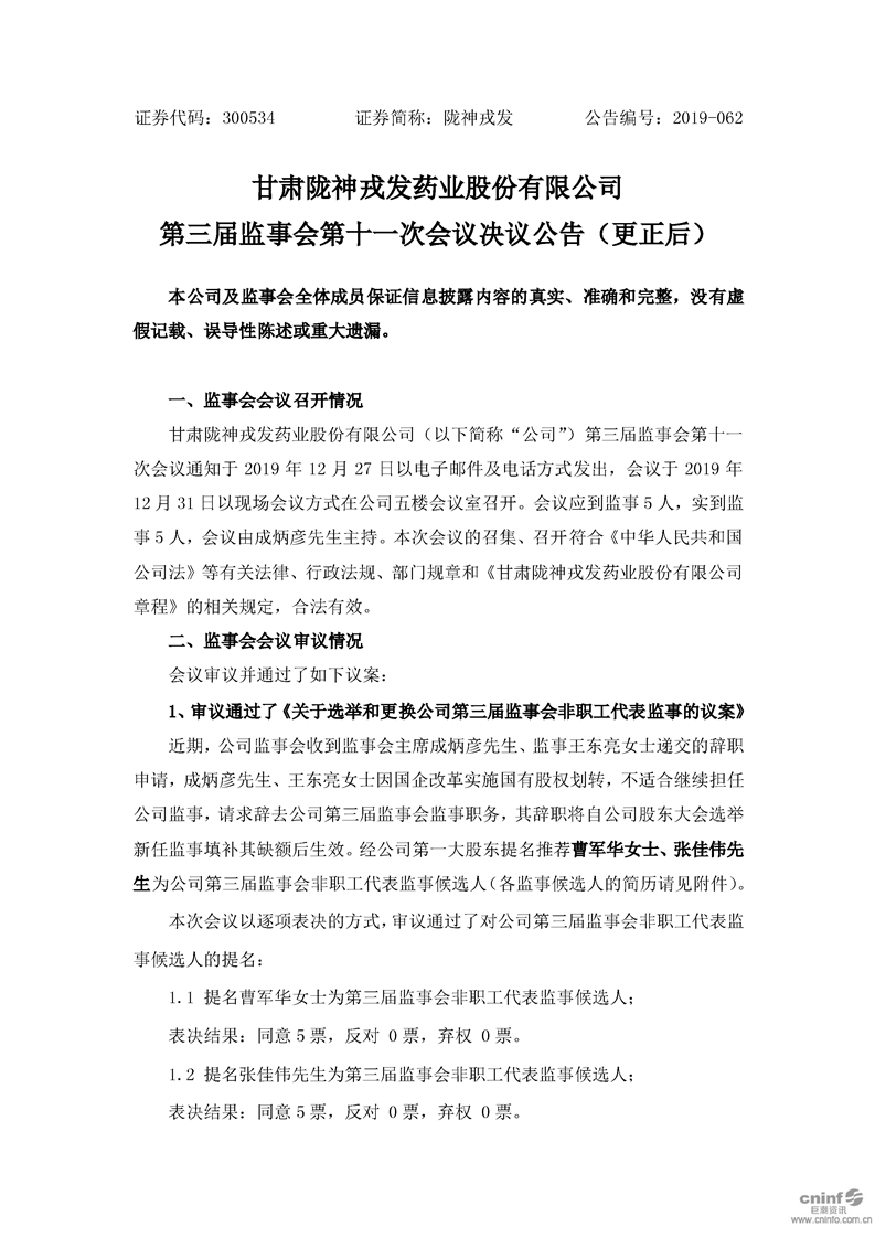 第三屆監(jiān)事會第十一次會議決議公告(更新后)