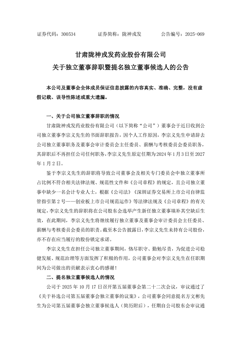 關(guān)于獨(dú)立董事辭職暨提名獨(dú)立董事候選人的公告