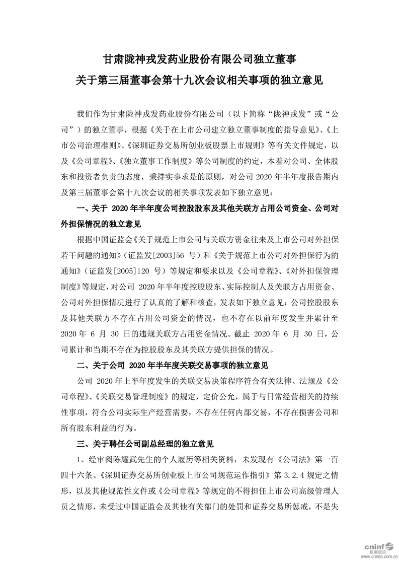 獨(dú)立董事關(guān)于第三屆董事會(huì)第十九次會(huì)議相關(guān)事項(xiàng)的獨(dú)立意見(jiàn)
