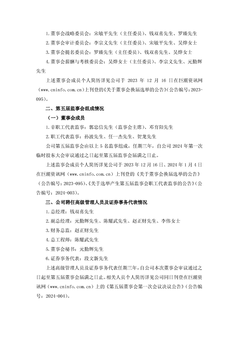 關于完成董事會、監(jiān)事會換屆選舉及聘任高級管理人員、證券事務代表的公告