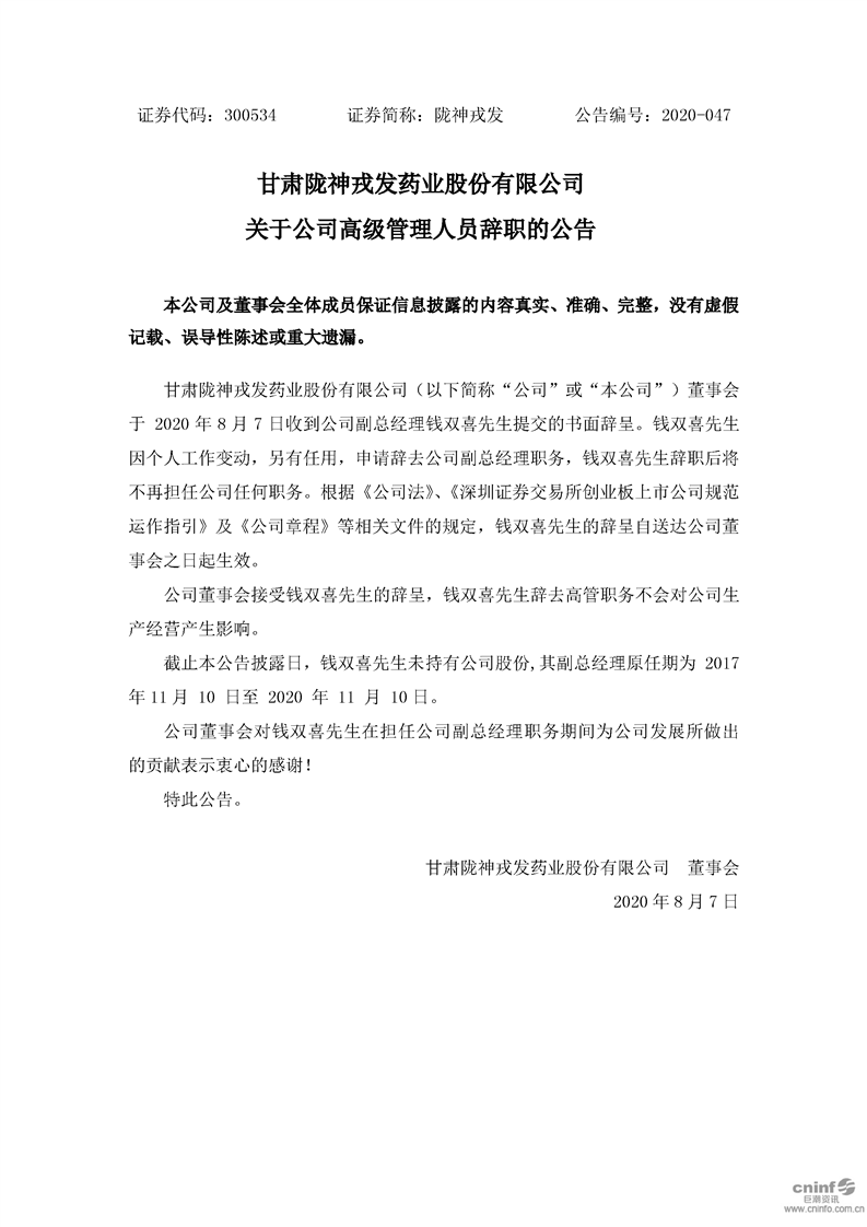 關(guān)于公司高級管理人員辭職的公告