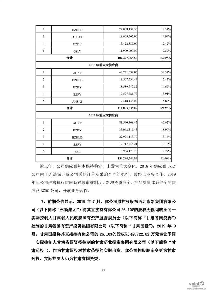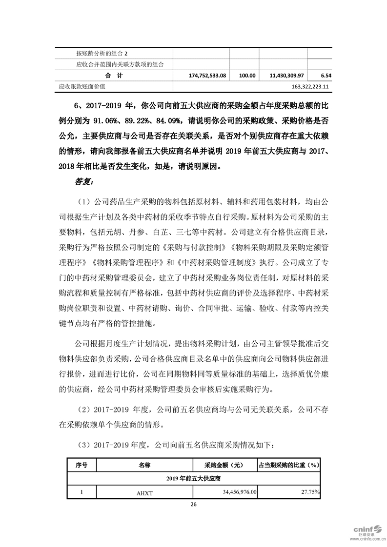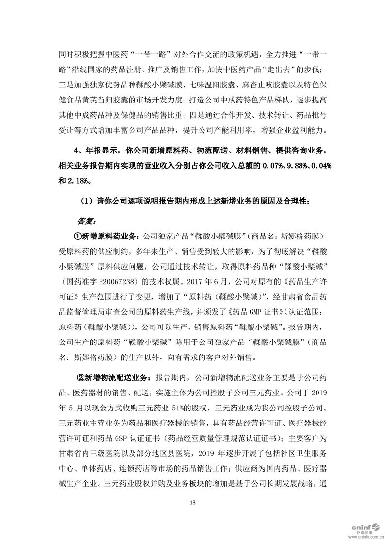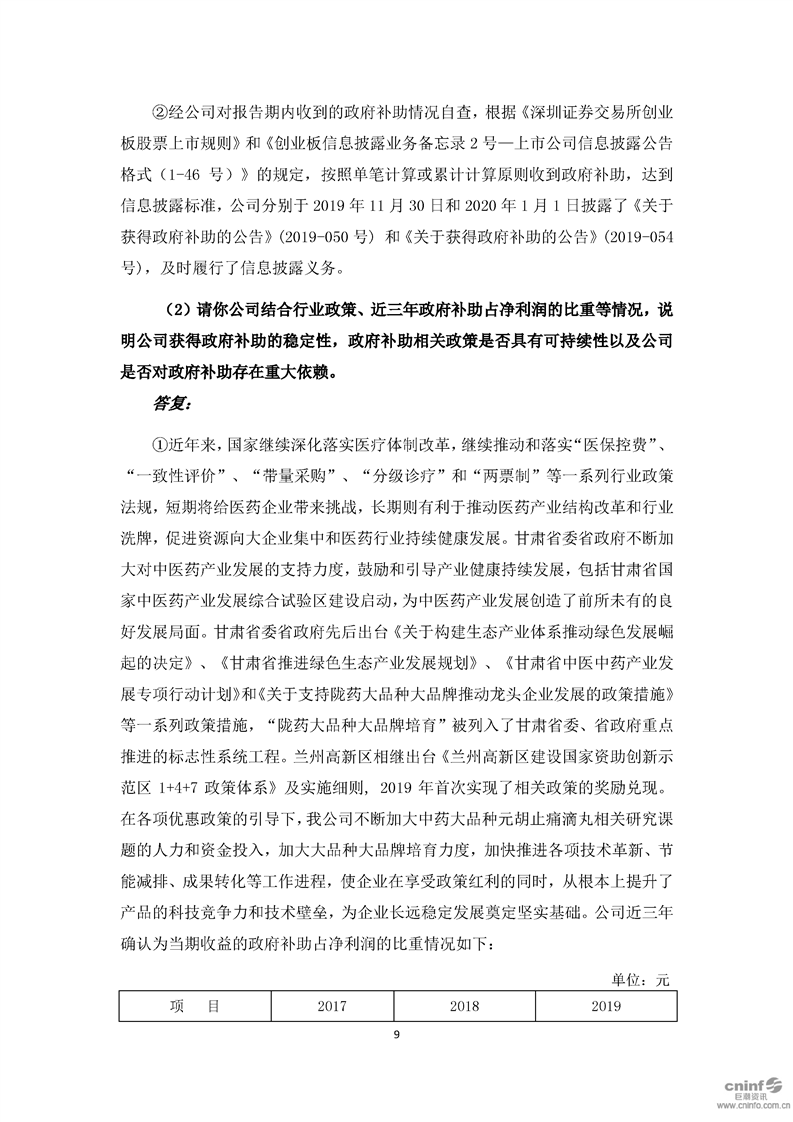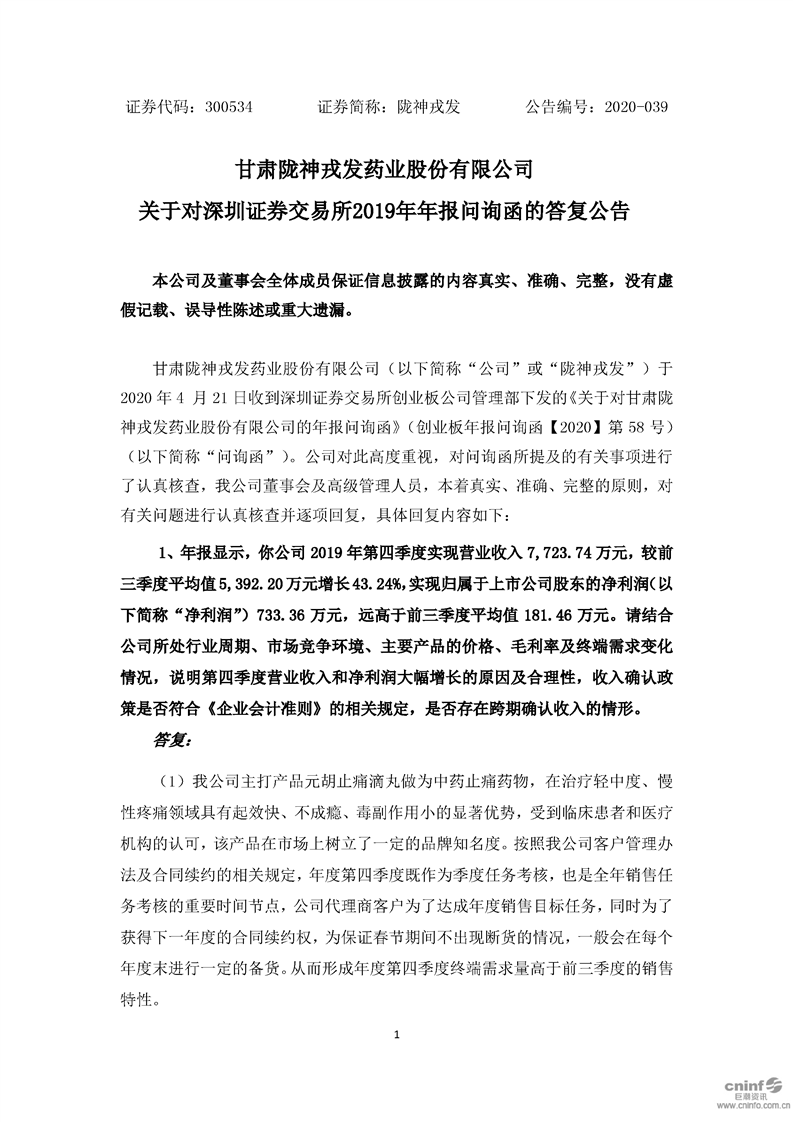 關(guān)于對(duì)深圳證券交易所2019年年報(bào)問(wèn)詢(xún)函的答復(fù)公告