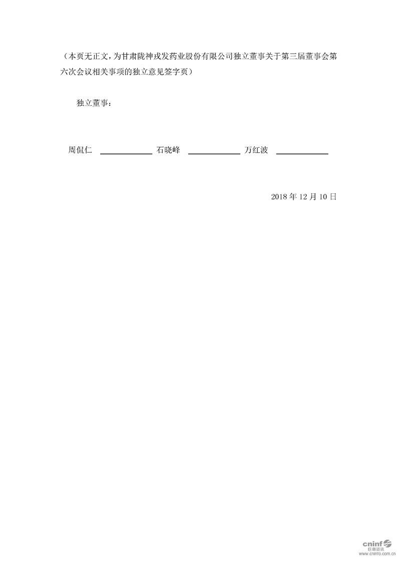 獨立董事 關(guān)于第三屆董事會第六次會議相關(guān)事項的獨立意見