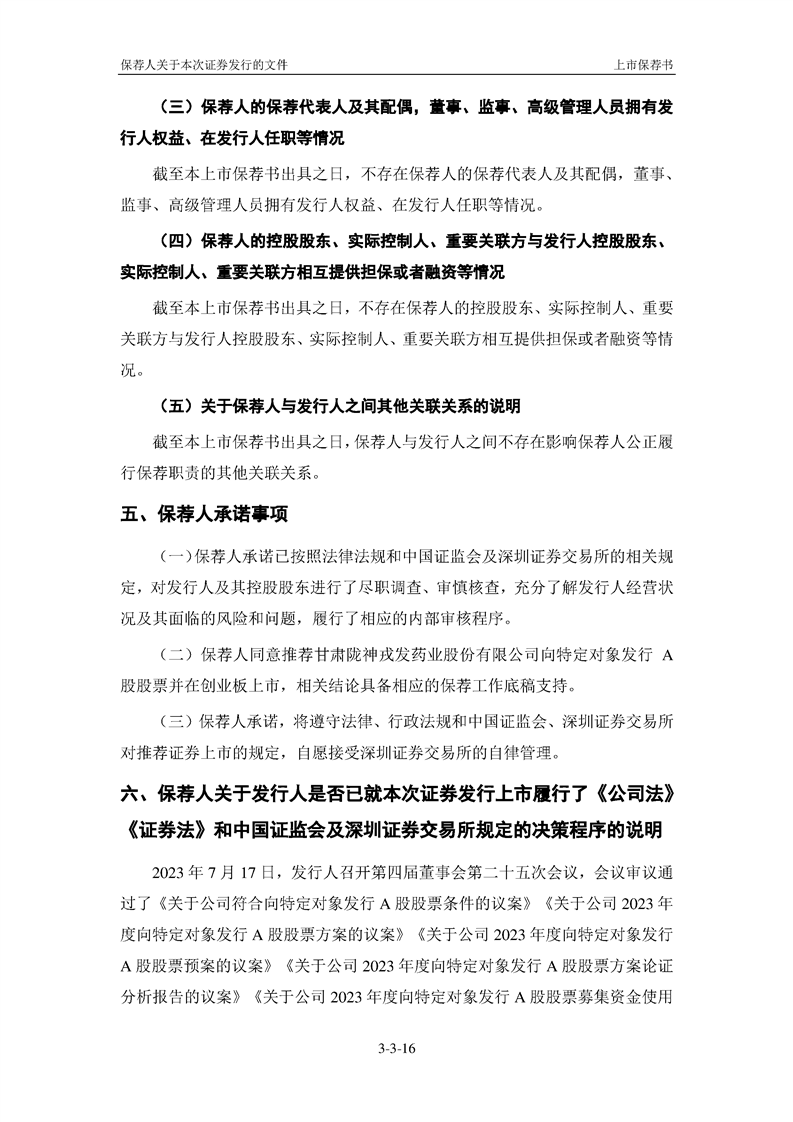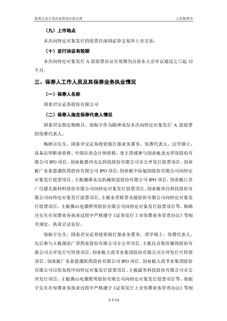 國泰君安證券股份有限公司關(guān)于甘肅隴神戎發(fā)藥業(yè)股份有限公司向特定對象發(fā)行A股股票之上市保薦書