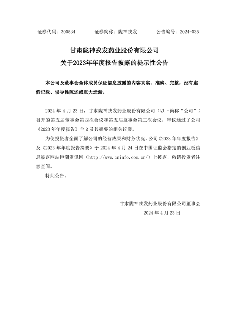 關(guān)于2023年年度報(bào)告披露的提示性公告