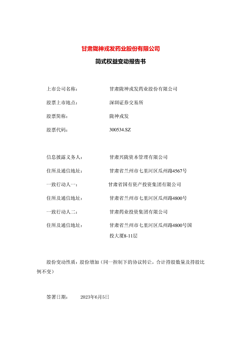 簡(jiǎn)式權(quán)益變動(dòng)報(bào)告書(興隴資本)