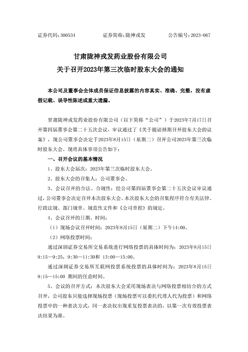 關(guān)于召開2023年第三次臨時股東大會的通知