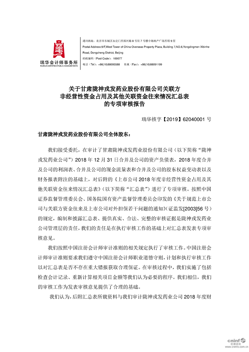 關(guān)于公司非經(jīng)營(yíng)性資金占用及其他關(guān)聯(lián)資金往來(lái)情況匯總表的專(zhuān)項(xiàng)審核報(bào)告