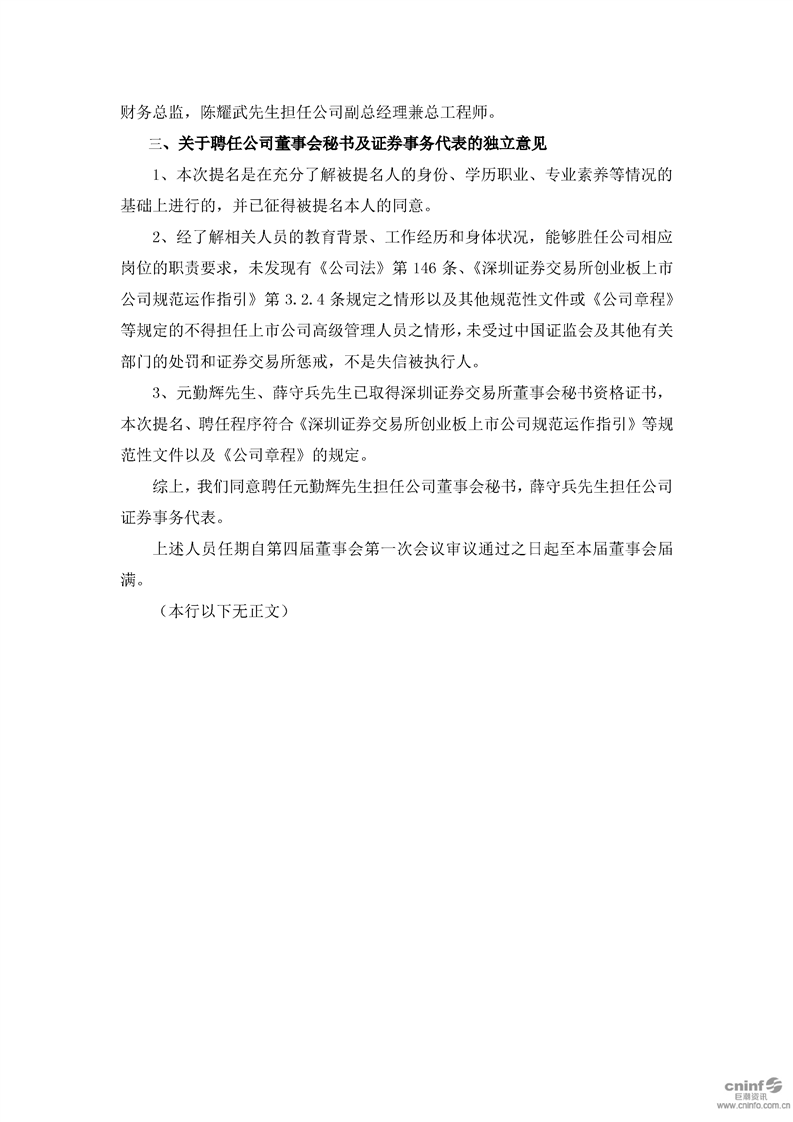 獨立董事關(guān)于第四屆董事會第一次會議相關(guān)事項的獨立意見
