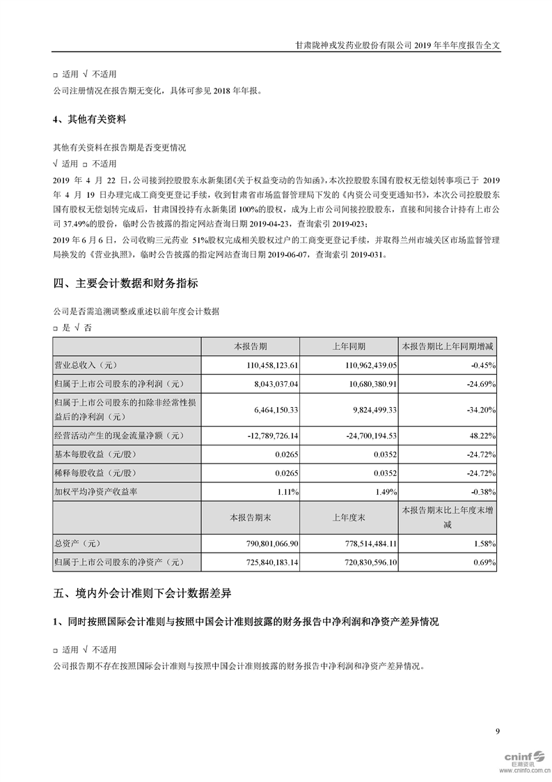 2019年半年度報告