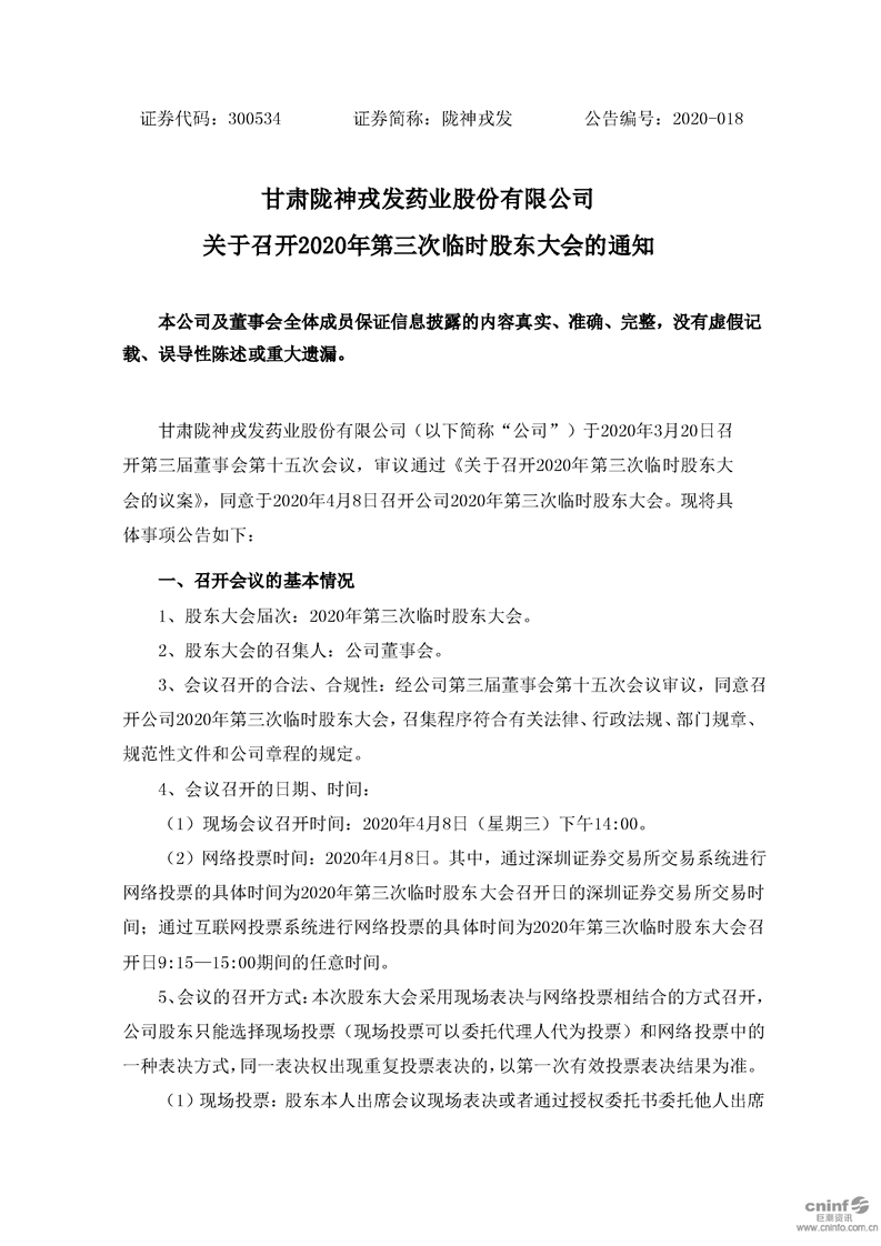 關(guān)于召開(kāi)2020年第三次臨時(shí)股東大會(huì)的通知