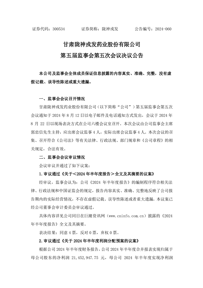 監(jiān)事會(huì)決議公告