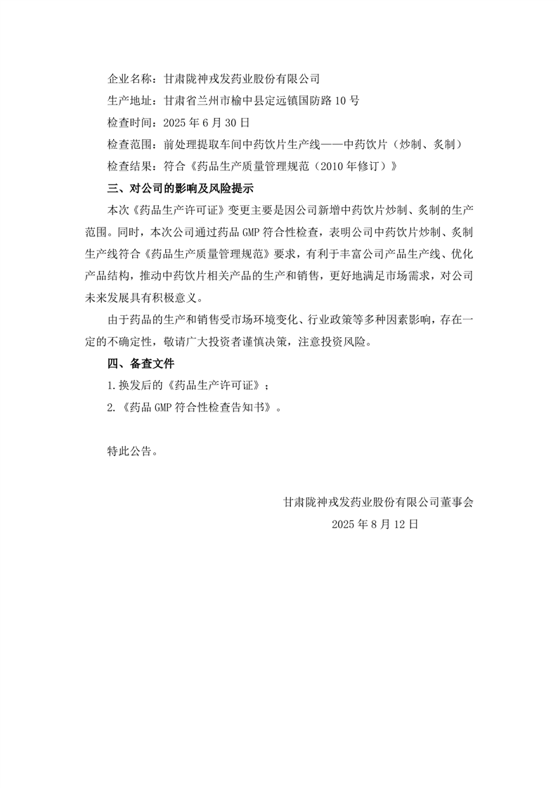 關(guān)于取得換發(fā)后的《藥品生產(chǎn)許可證》以及通過(guò)藥品GMP符合性檢查的公告