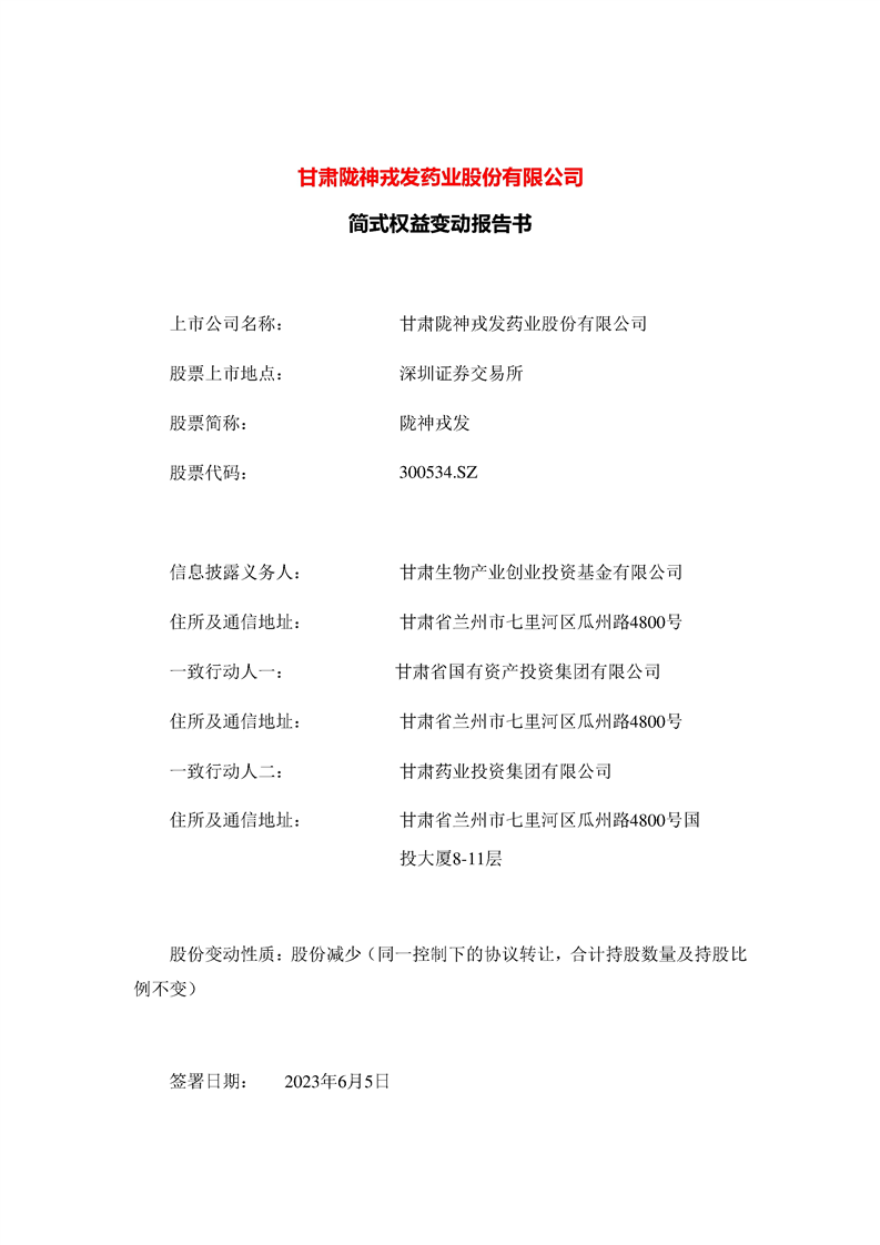 簡(jiǎn)式權(quán)益變動(dòng)報(bào)告書(shū)(生物基金)