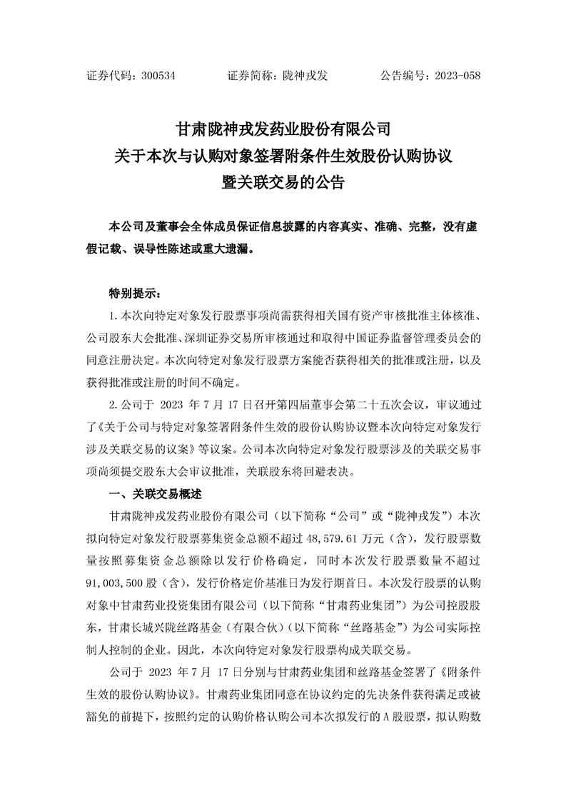 關(guān)于本次與認(rèn)購對(duì)象簽署附條件生效股份認(rèn)購協(xié)議暨關(guān)聯(lián)交易的公告
