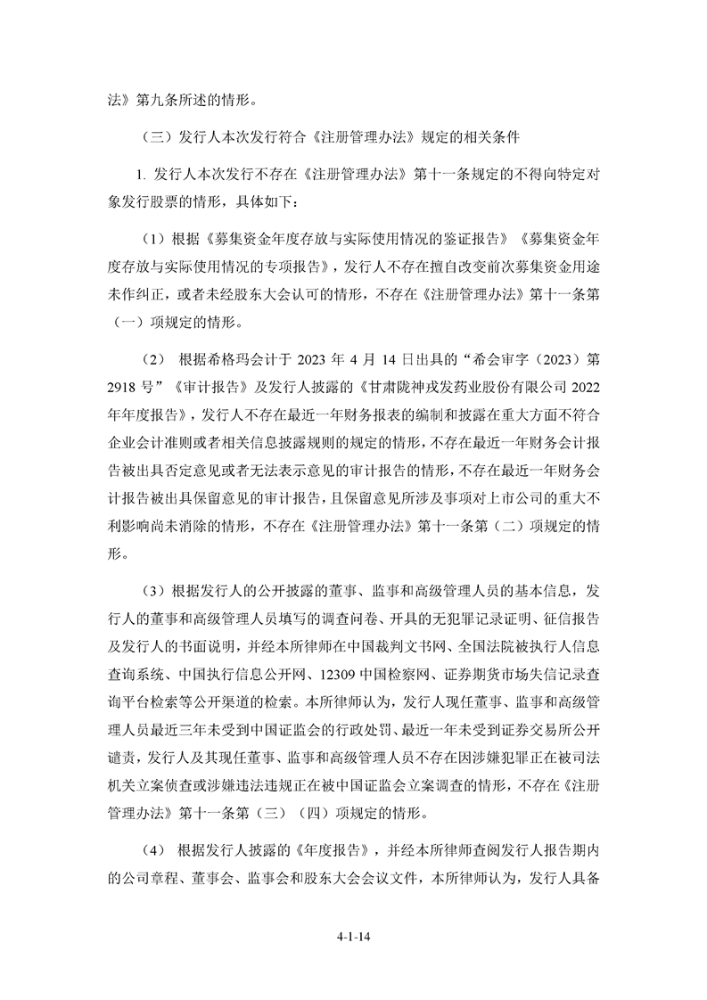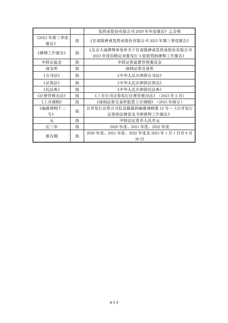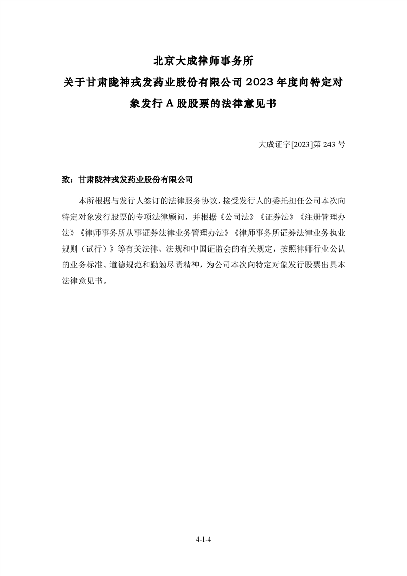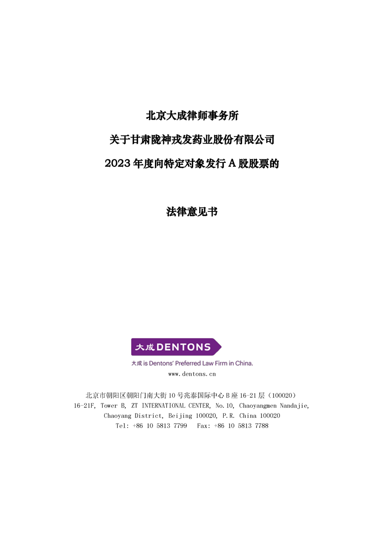 北京大成律師事務(wù)所關(guān)于甘肅隴神戎發(fā)藥業(yè)股份有限公司2023年度向特定對(duì)象發(fā)行A股股票的法律意見書