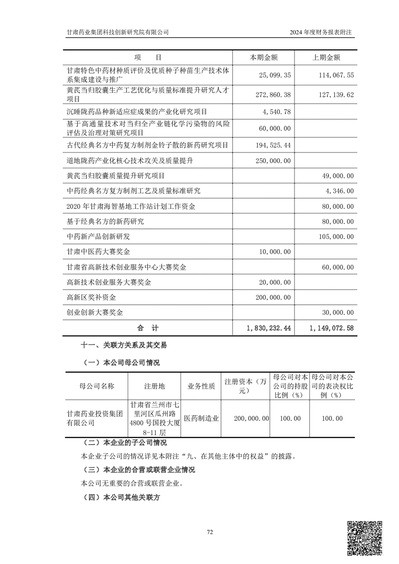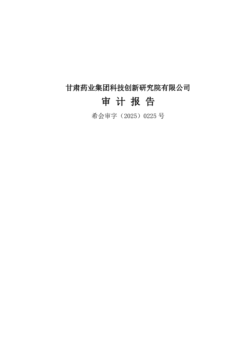 甘肅藥業(yè)集團(tuán)科技創(chuàng)新研究院有限公司審計(jì)報(bào)告(希會(huì)審字(2025)0225號(hào))