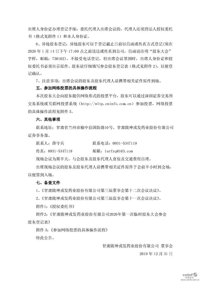 關于召開2020年第一次臨時股東大會的通知
