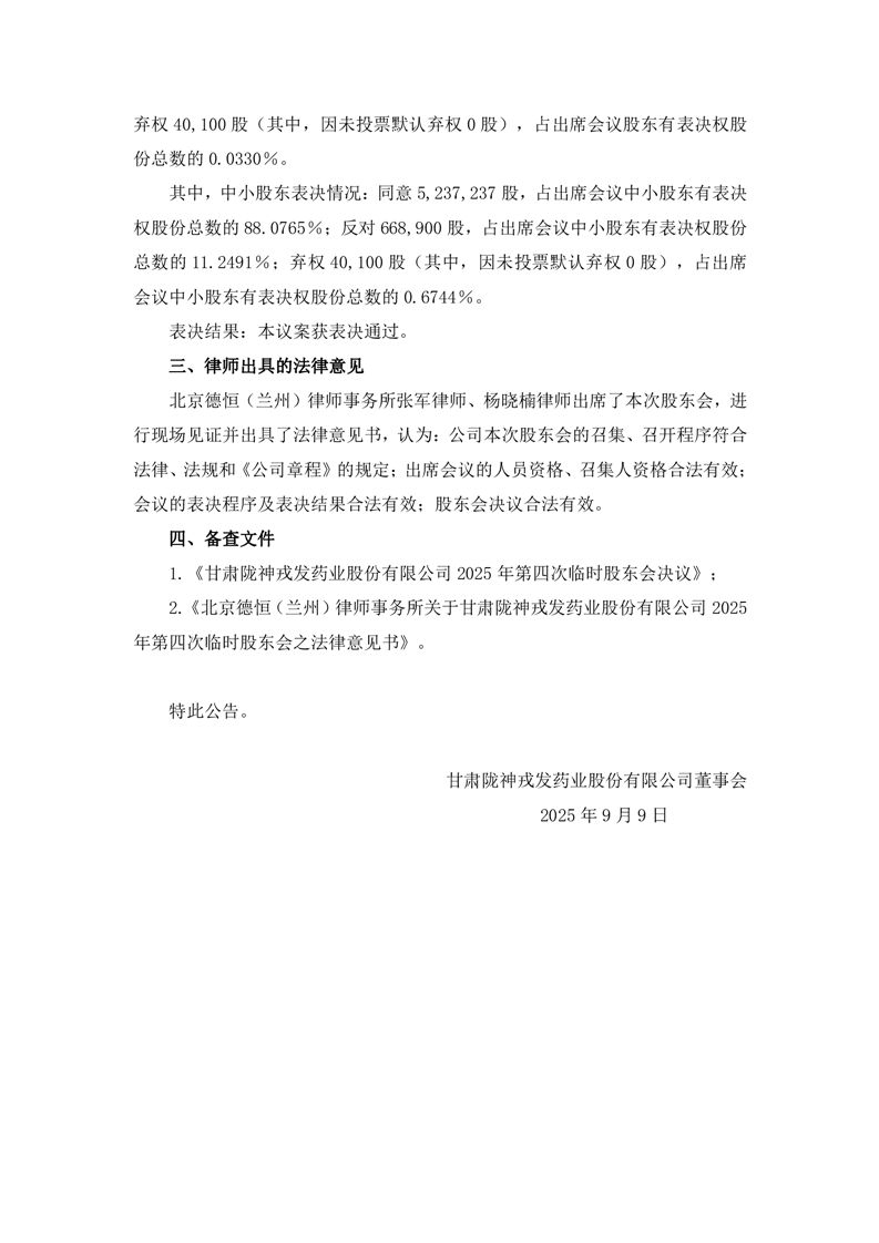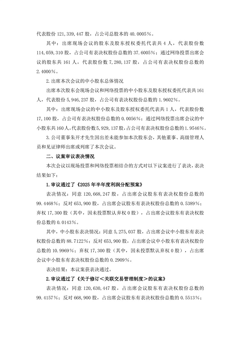 2025年第四次臨時(shí)股東會(huì)決議公告