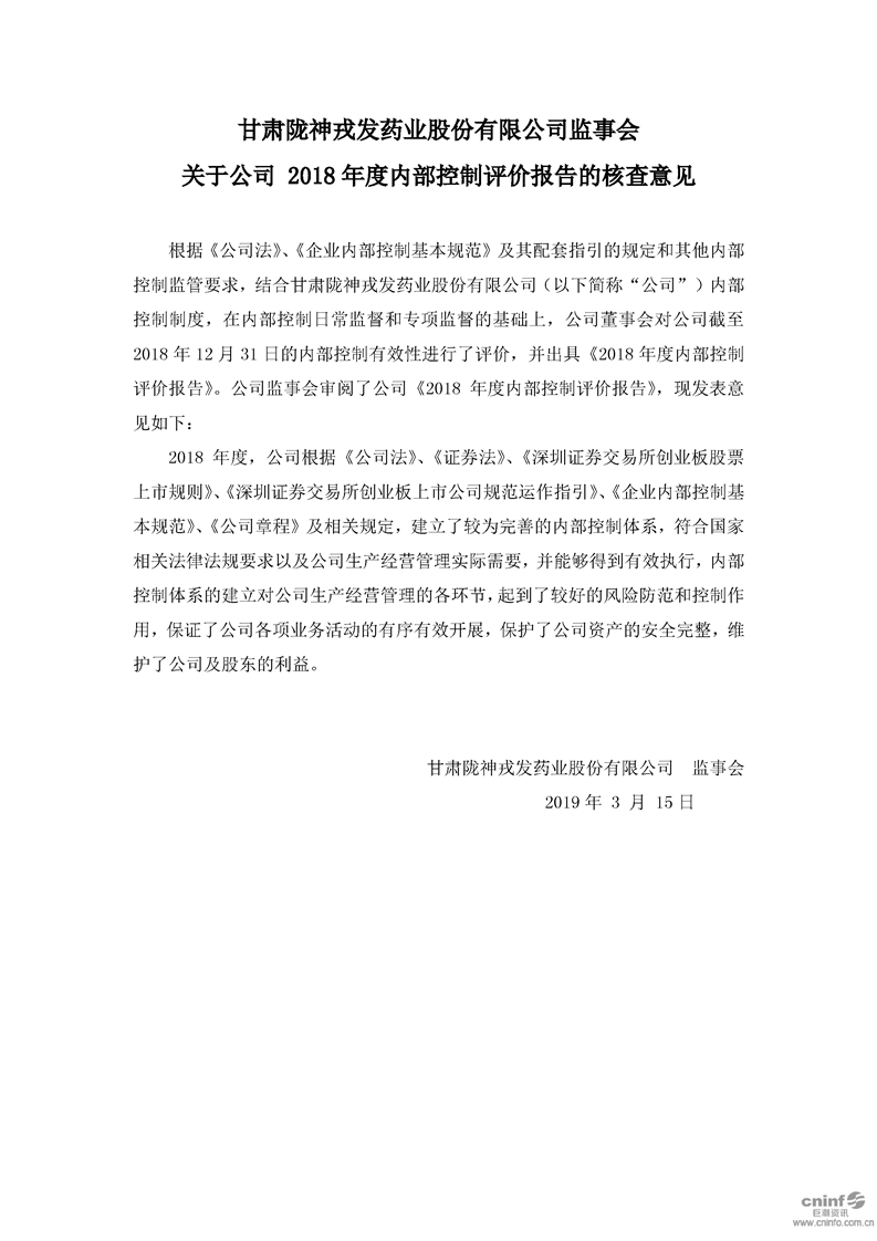 監(jiān)事會(huì) 關(guān)于公司 2018 年度內(nèi)部控制評(píng)價(jià)報(bào)告的核查意見
