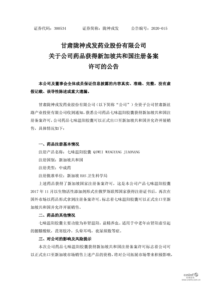 關(guān)于公司藥品獲得新加坡共和國(guó)注冊(cè)備案許可的公告