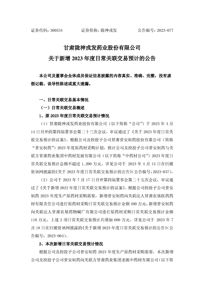 關(guān)于新增2023年度日常關(guān)聯(lián)交易預(yù)計(jì)的公告