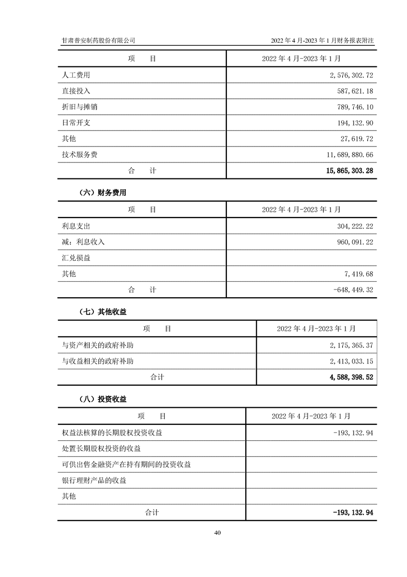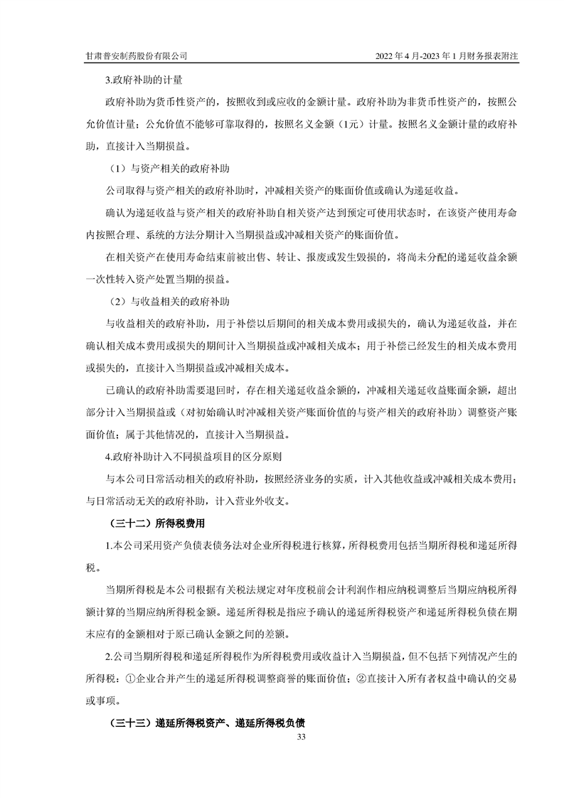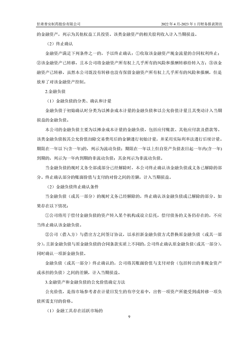 甘肅普安制藥股份有限公司資產(chǎn)重組過渡期損益情況專項審計報告