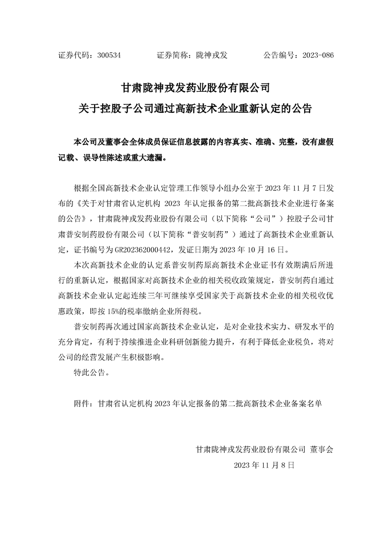 關(guān)于控股子公司通過(guò)高新技術(shù)企業(yè)重新認(rèn)定的公告