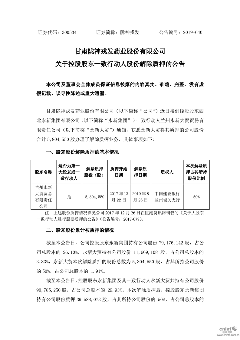 關(guān)于控股股東一致行動(dòng)人股份解除質(zhì)押的公告