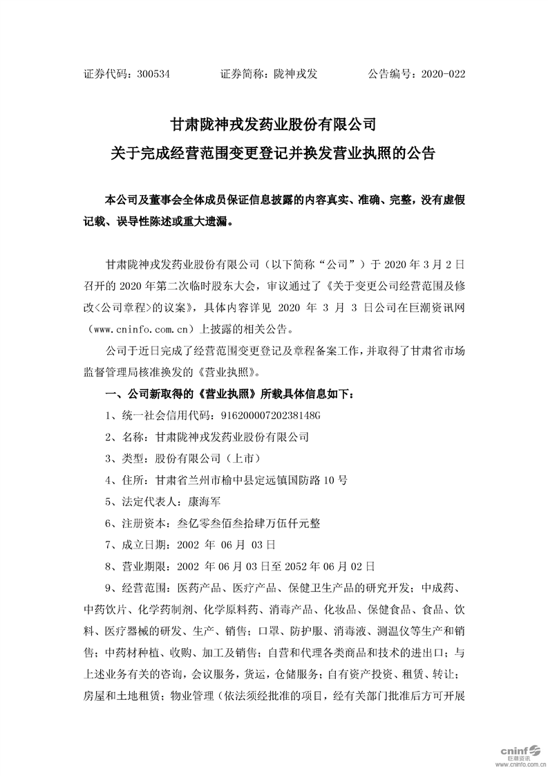 關(guān)于完成經(jīng)營(yíng)范圍變更登記并換發(fā)營(yíng)業(yè)執(zhí)照的公告