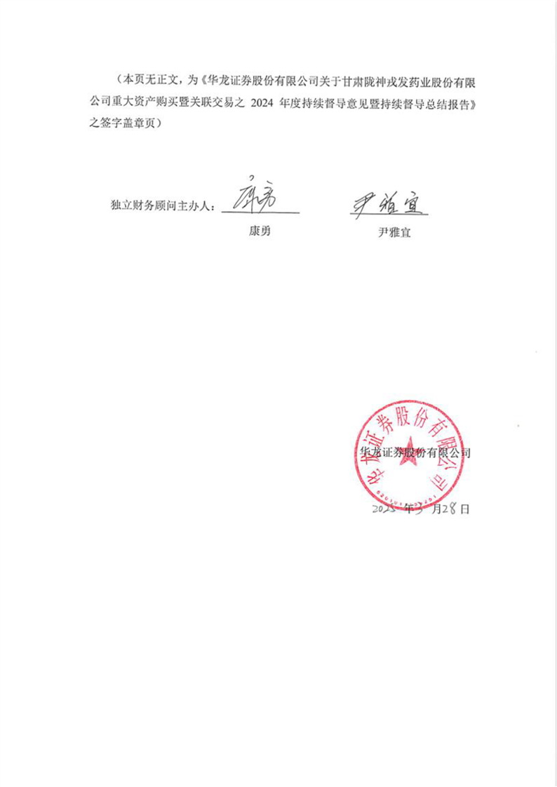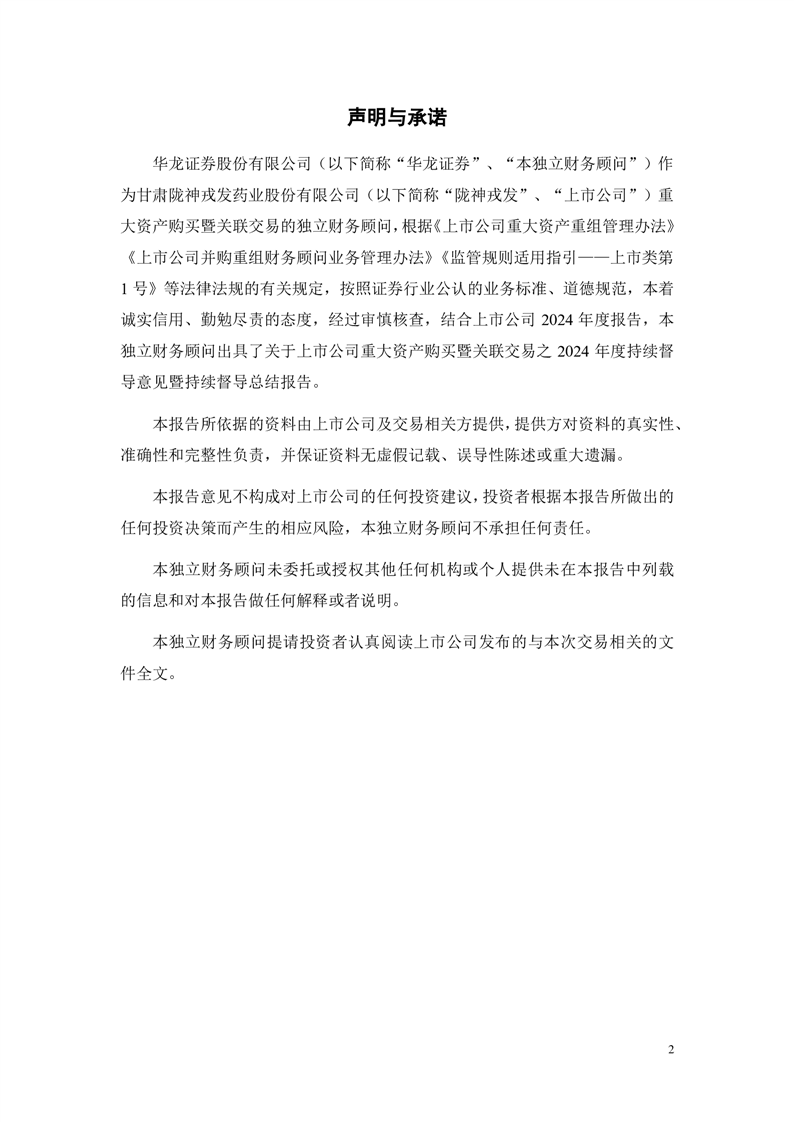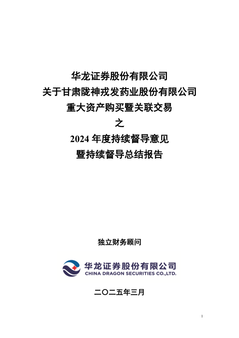 華龍證券股份有限公司關(guān)于甘肅隴神戎發(fā)藥業(yè)股份有限公司重大資產(chǎn)購買暨關(guān)聯(lián)交易之2024年度持續(xù)督導(dǎo)意見暨持續(xù)督導(dǎo)總結(jié)報告