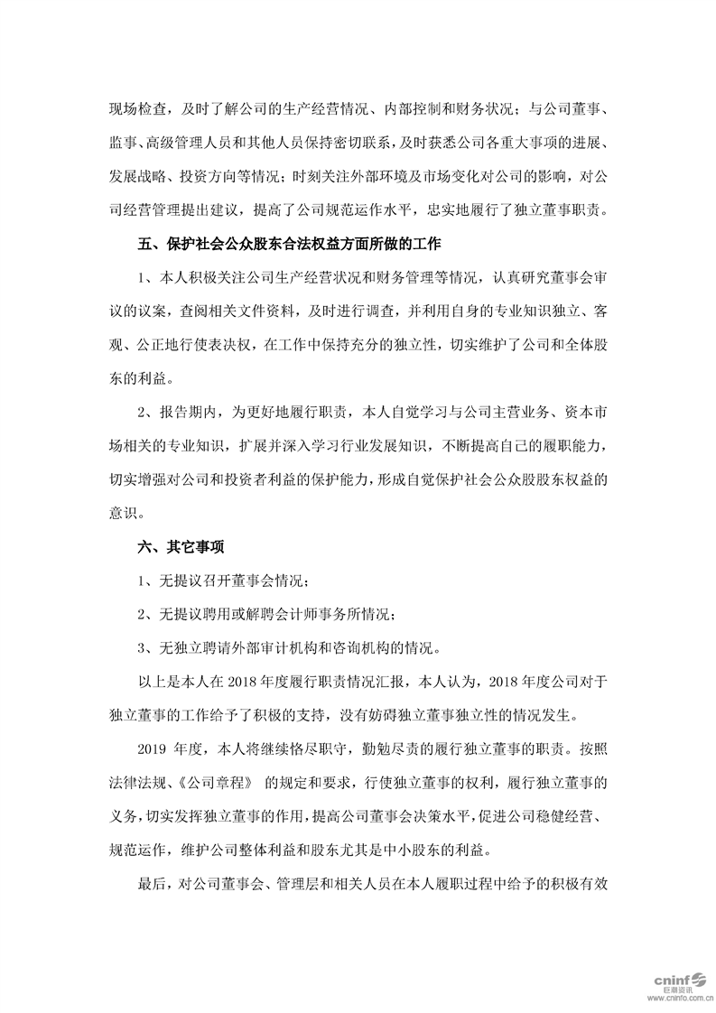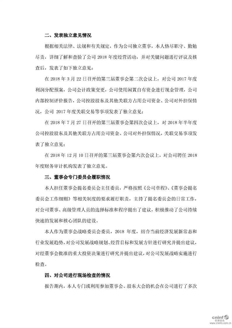 2018 年度獨(dú)立董事述職報告(石曉峰)