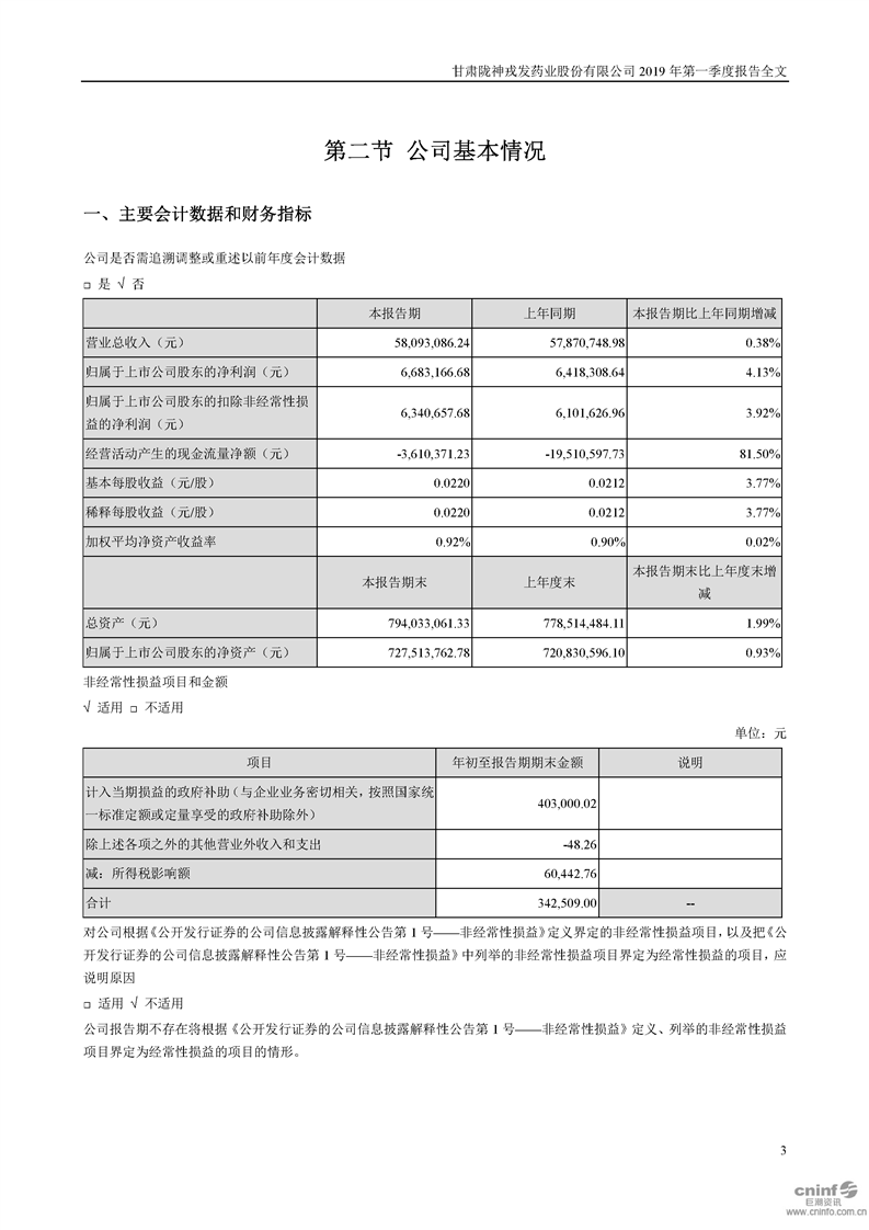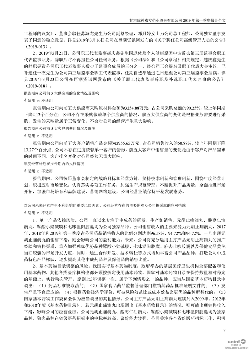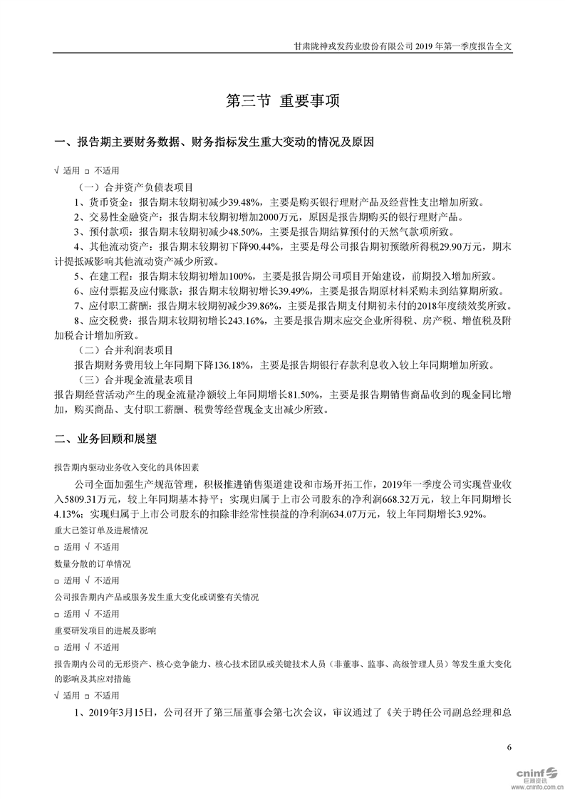 2019年第一季度報告全文