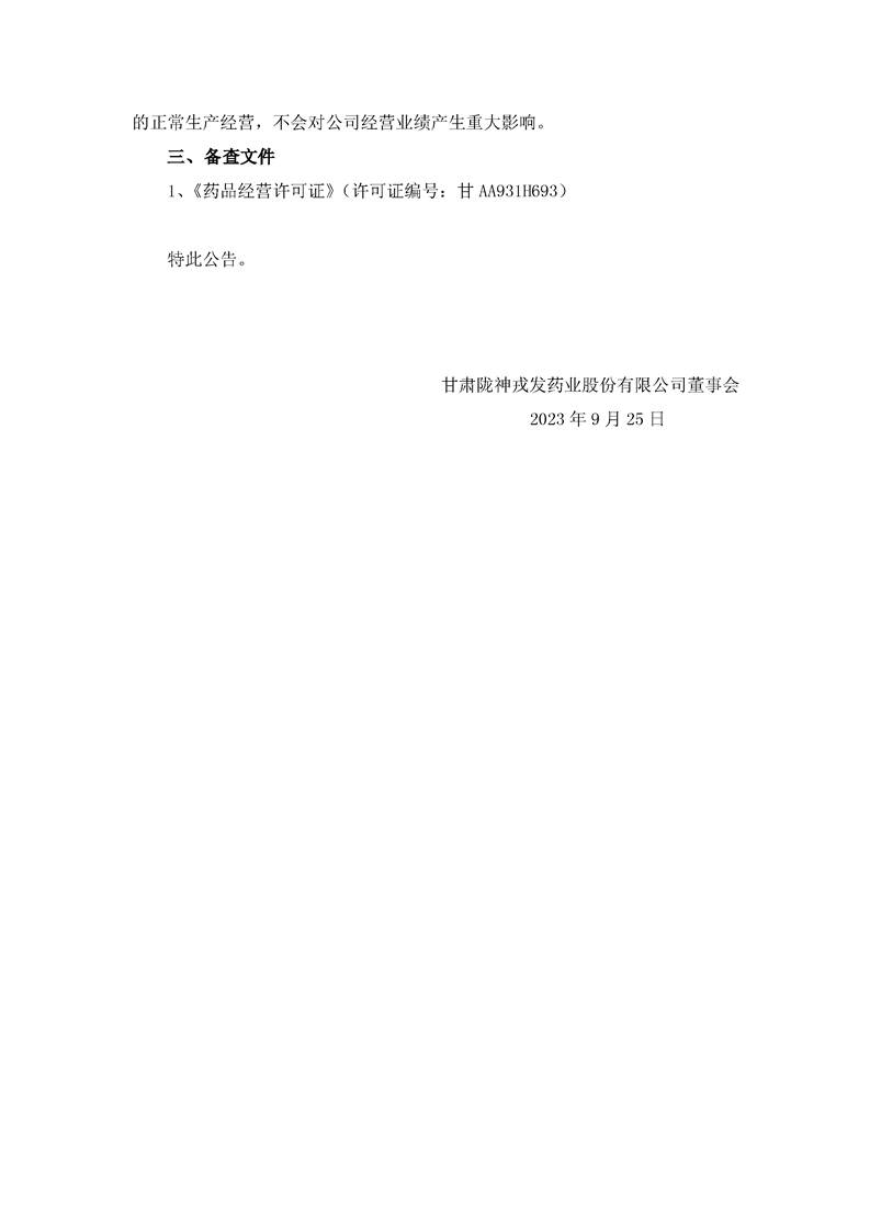 關(guān)于控股子公司取得換發(fā)后的《藥品經(jīng)營(yíng)許可證》的公告