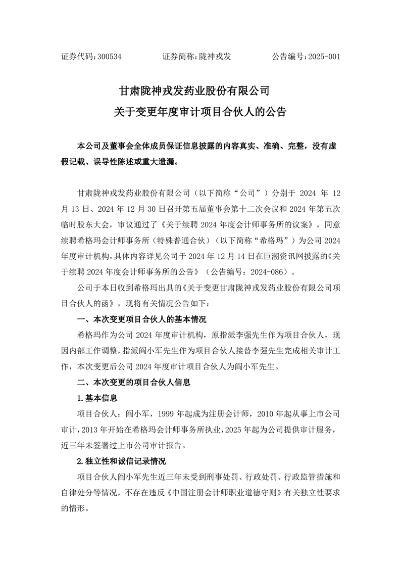 關于變更年度審計項目合伙人的公告