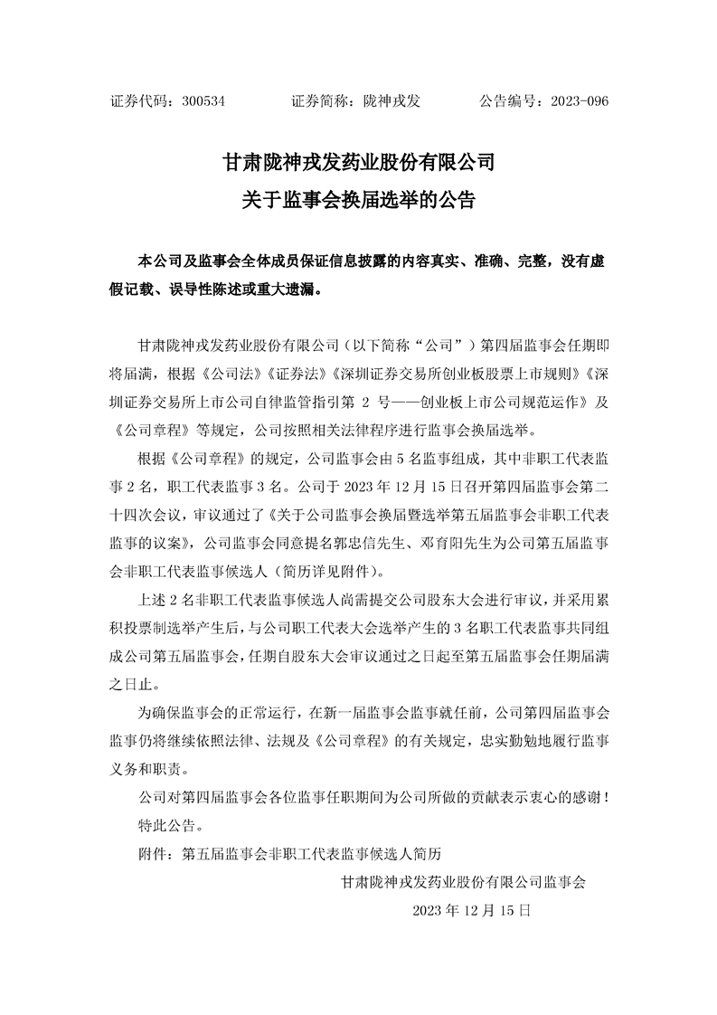 關(guān)于監(jiān)事會換屆選舉的公告