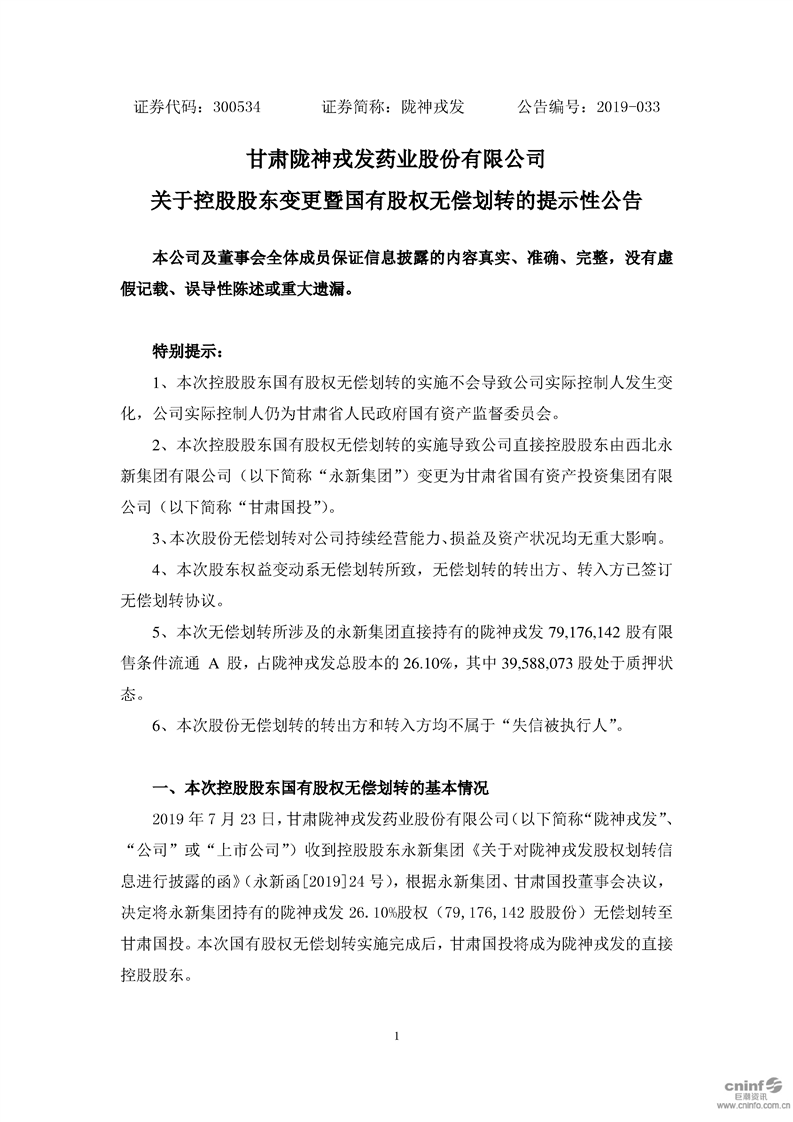 關(guān)于控股股東變更暨國(guó)有股權(quán)無(wú)償劃轉(zhuǎn)的提示性公告
