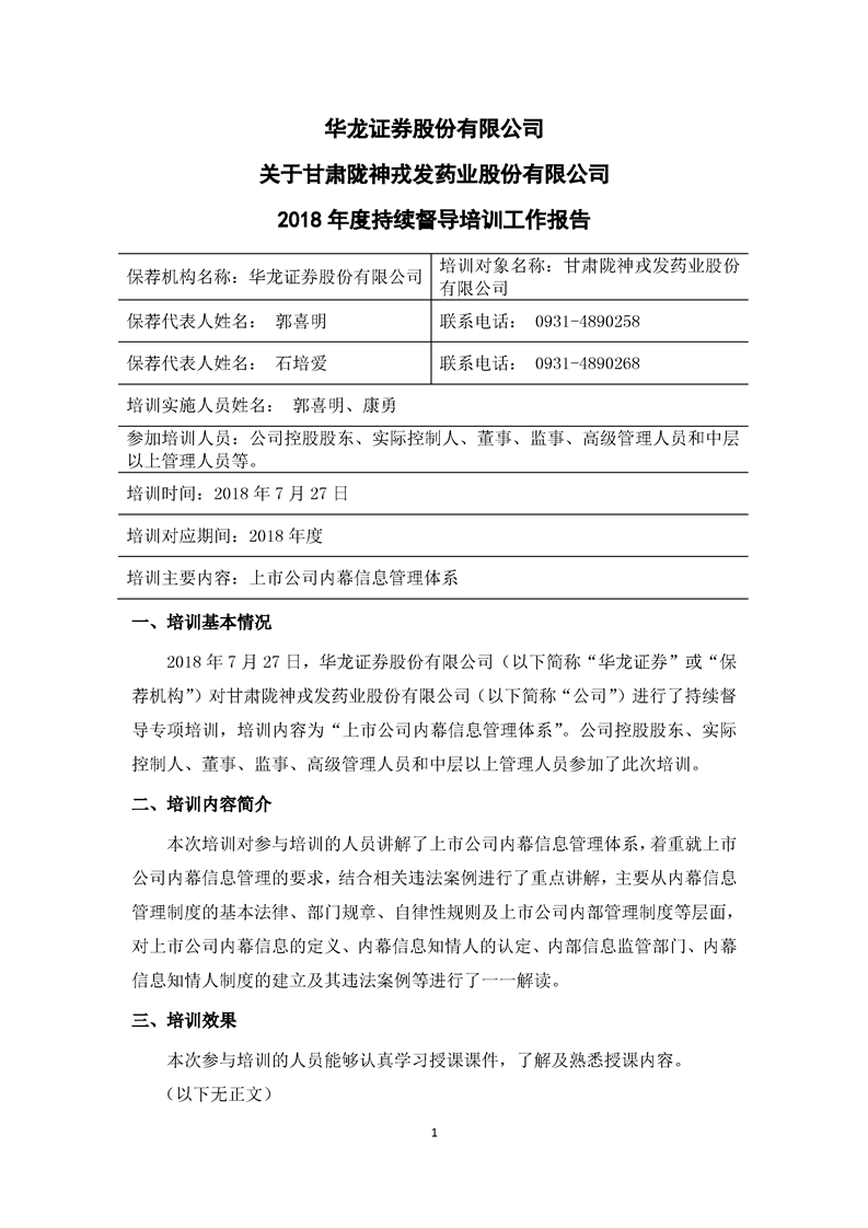 2018 年度持續(xù)督導(dǎo)培訓(xùn)工作報(bào)告